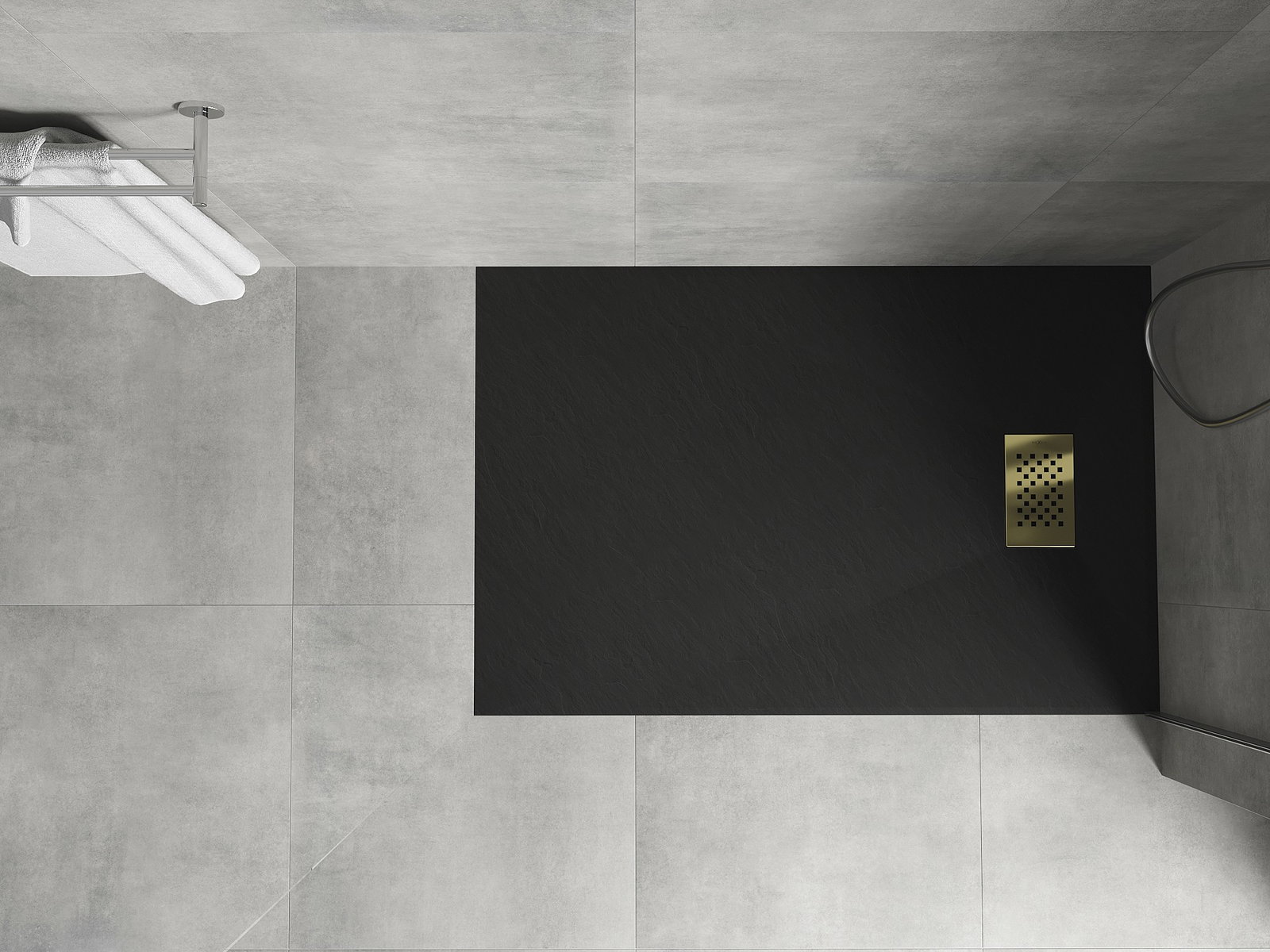 Déi geréng Héicht vum Douchebecken erlaabt eng traditionell Installatioun op de Buedem oder andeems se an de Buedem gesat gëtt, déi eng aussergewéinlech, eenheetlech Uewerfläch schaaft. D'Flexibilitéit vun der Installatioun erlaabt de Douchebecken un verschidden Interieurarrangementer unzepassen.