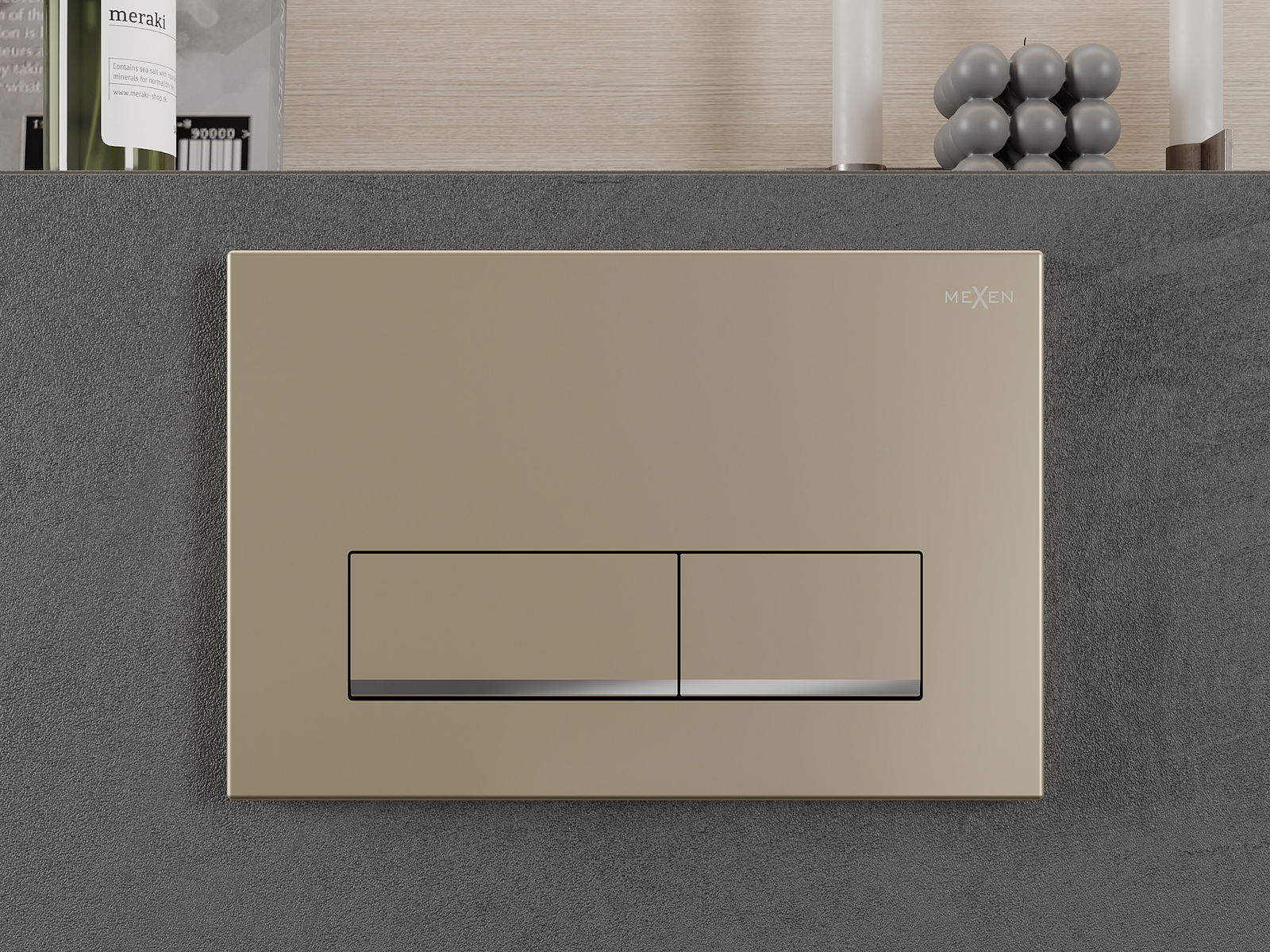 D'Spullung gëtt op déi traditionell Manéier ausgeléist - en Drécken op de Knäppchen aktivéiert eng Hebel, déi e Ventil opmécht an de Waasser spullt. Et ass eng einfach an intuitiv Léisung, déi dacks an de Buedzëmmer fonnt gëtt.