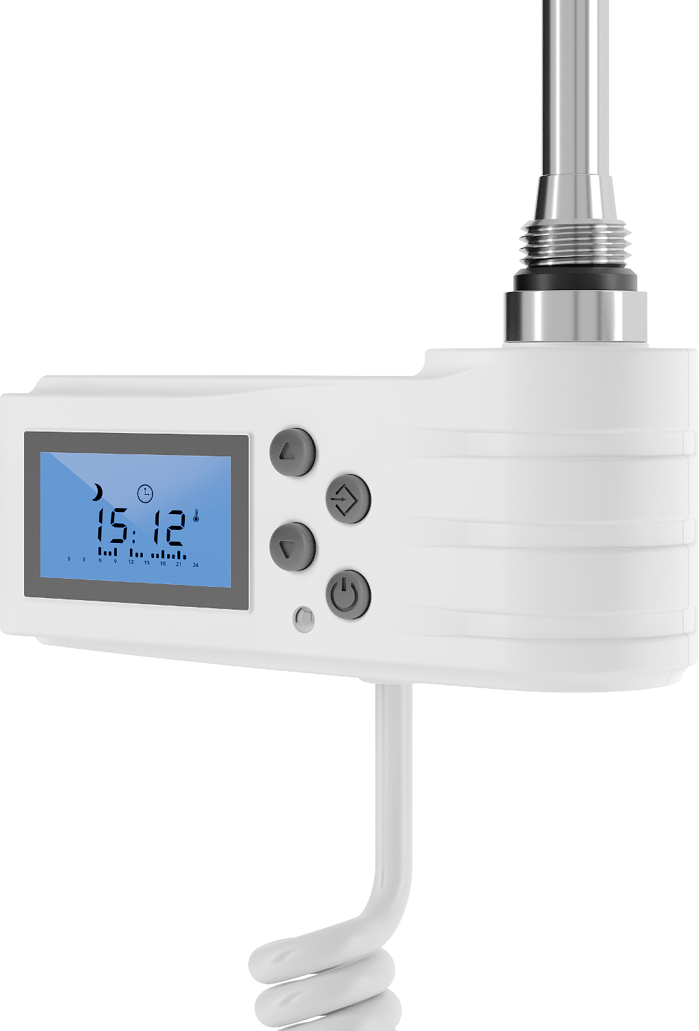 Mexen elektresch Heizung 450 W (wäiss) ass eng effizient an modern Léisung fir Äert Buedzëmmer. Si huet eng total Längt vu 490 mm an en Heizelement mat 415 mm Längt. D'Heizung operéiert bei enger Spannung vun 230V/50Hz a bitt eng Kraaft vun 450 W. D'wäiss Faarf passt perfekt an all Interieur. Si ass mat engem LED Display, Kannersecherung an Funktiounen wéi Sensitive, Comfort, Smart, ECO an Anti-frost ausgestatt. Schutzgrad IP44 an zousätzlech Sécherheet géint Dréchlaf garantéieren Sécherheet an Komfort an der Benotzung.