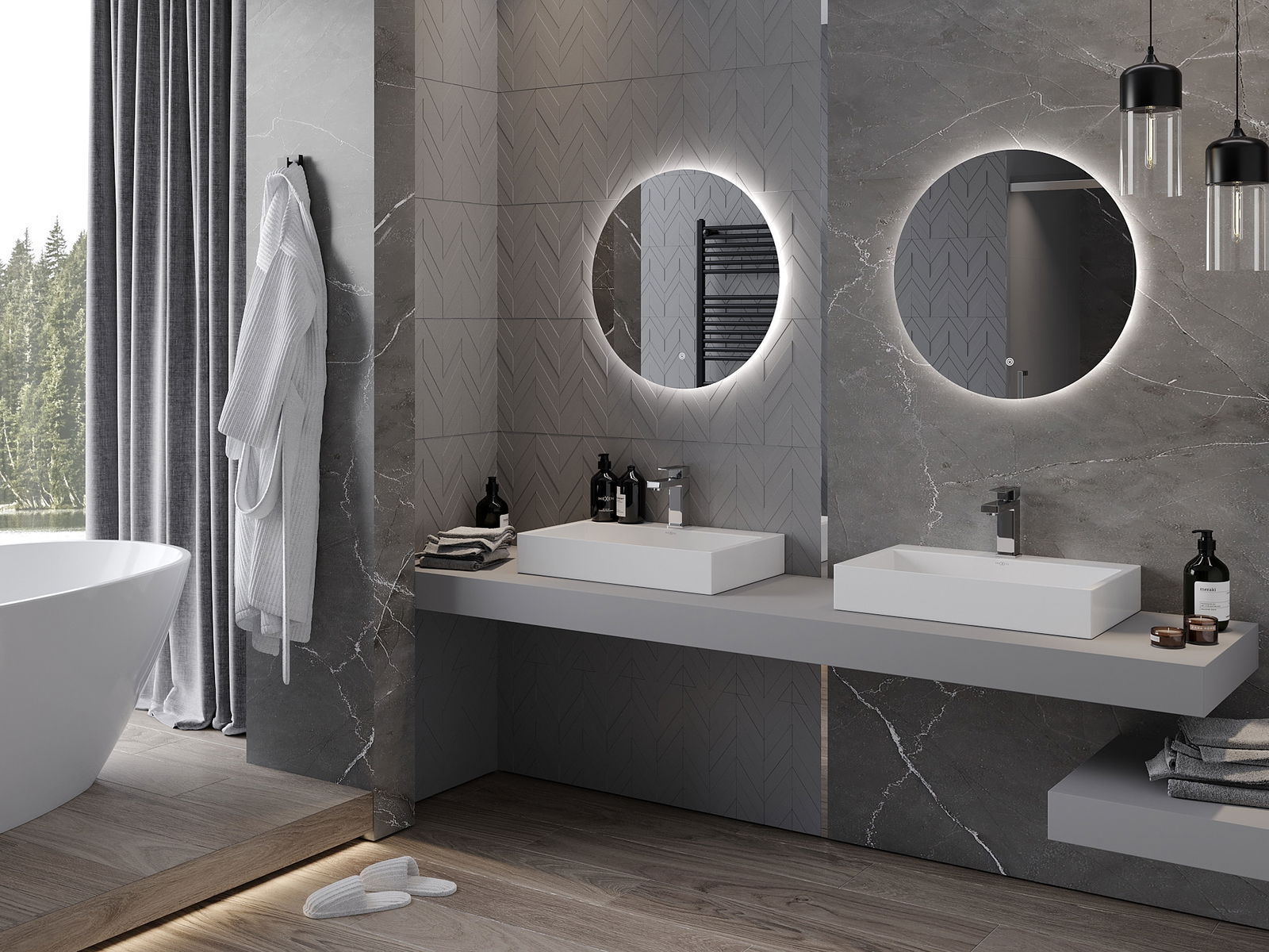 Mexen Erg beliichtent Buedzëmmer Spigel, ronn 60 cm, LED 6000K, anti-Faar - 9823-060-060-611-00