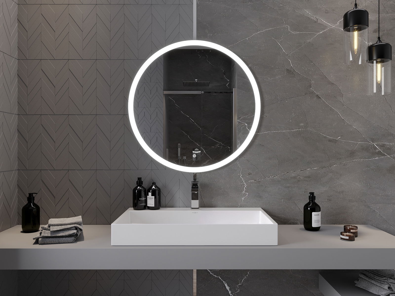 D'Spigl-Beliichtung ka ganz einfach a praktesch mam Beréiere vum Schalter um Spigelstëppche ageschalt ginn. Dëst erlaabt eng séier Beliichtung ouni d'Noutwennegkeet op en traditionelle Liichtschalter, deen méi wäit ewech ass, zréckzegräifen.