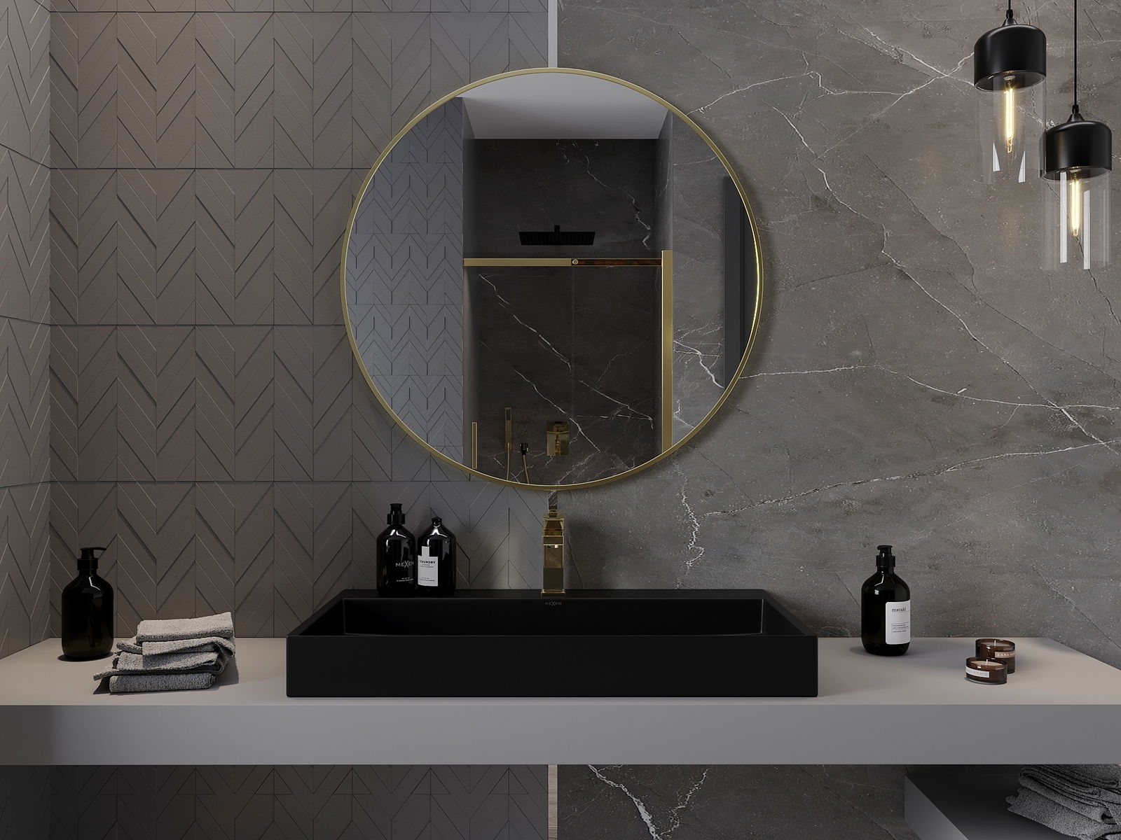 Mexen Loft ronde Buedzëmmer Spigel 90 cm, gëllent Rumm - 9850-090-090-000-50