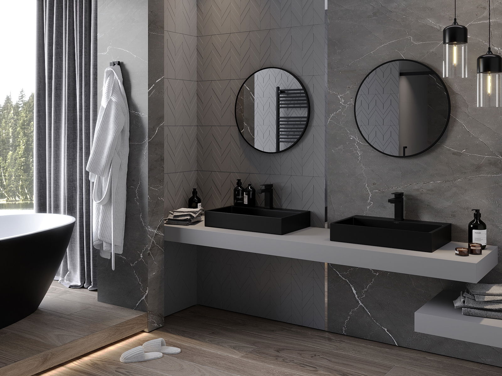 Spigel mat engem Aluminiumsrahmen ass déi ideal Kombinatioun wéinst senger Haltbarkeet, Ästhetik an modernem Erscheinungsbild. Aluminium ass e liicht, awer gläichzäiteg robust Material, resistent géint Korrosioun, wat et zu enger exzellenter Wiel mécht, besonnesch fir Raim mat erhéierter Fiichtegkeet.
