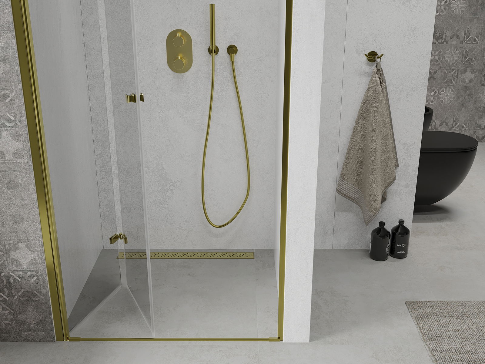 Mexen Lima klapps Duschdier 70 cm, transparent, gëllen - 856-070-000-50-00