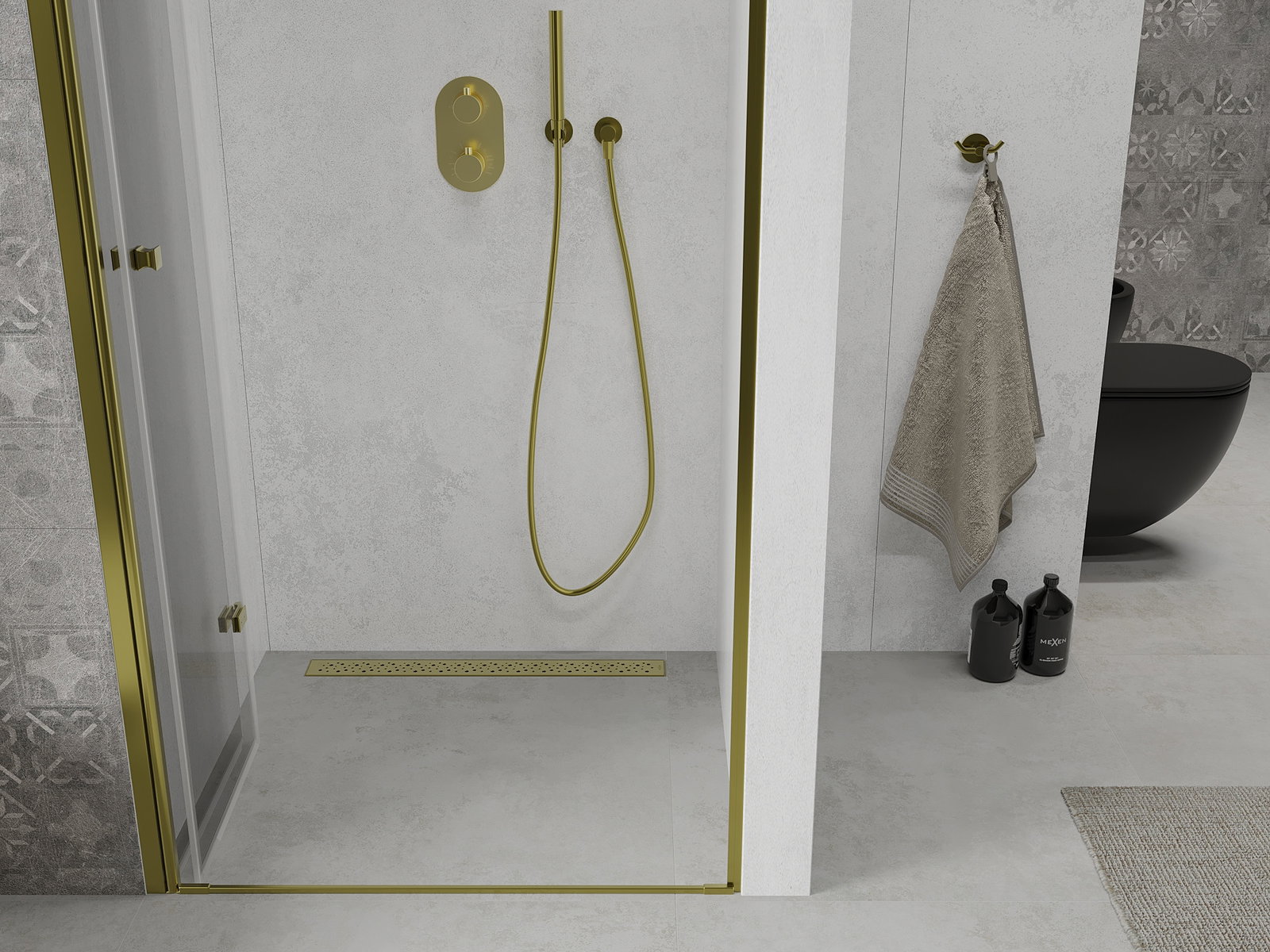 Mexen Lima klappbar Duschdier 80 cm, transparent, gëllen - 856-080-000-50-00