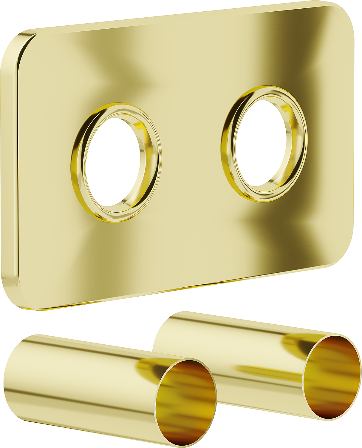 De Verkleedungsset besteet aus enger duebeler Rosette an zwee Hülsen, déi fir d'Montage vu thermostatesche Sets a Heizkierperventile geduecht sinn