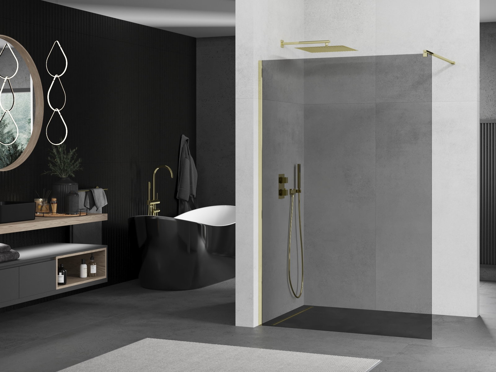 Mexen Kioto Walk-in Duschwand 120 x 200 cm, Grafit 8 mm, Gold - 800-120-101-50-40