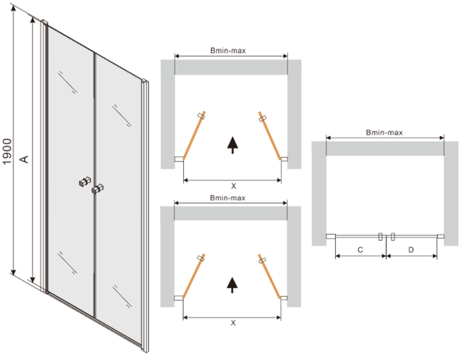 Dank dem universelle Montagesystem kënnen d'Duschdieren op der lénker oder op der rietser Säit montéiert ginn, ofhängeg vun de Besoinen. Duerch dëst kënns du de Buedzëmmer-Dusch mat Liichtegkeet un de Raum upassen.