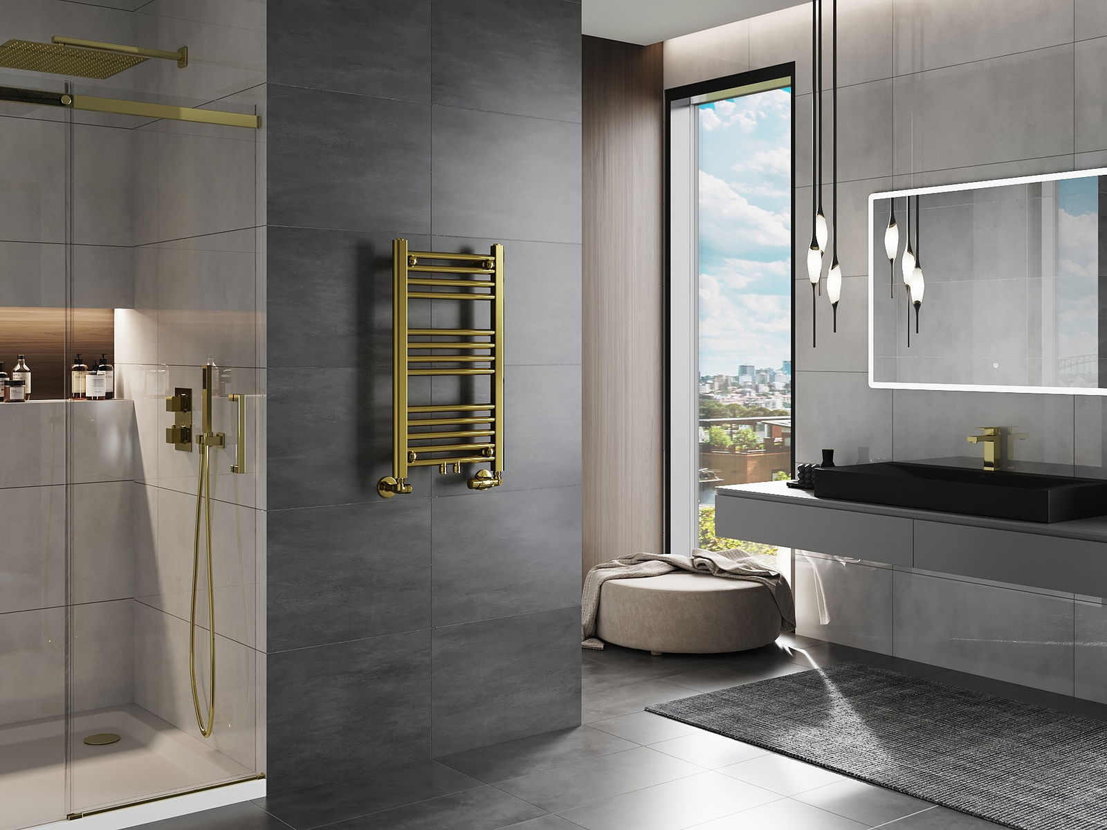 Produkt aus héichwäertege Materialien, déi resistent géint Dofegeet a Korrosioun sinn, doduerch behält et seng attraktiv Ausgesin an Funktionalitéit laangfristeg, onofhängeg vum Feuchtigkeitsniveau am Raum.