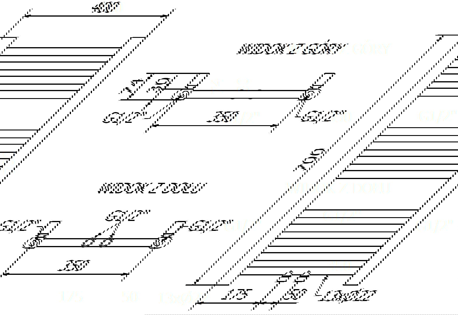 - 4xG ½” uewen an ënnen op der rietser oder lénkser Säit