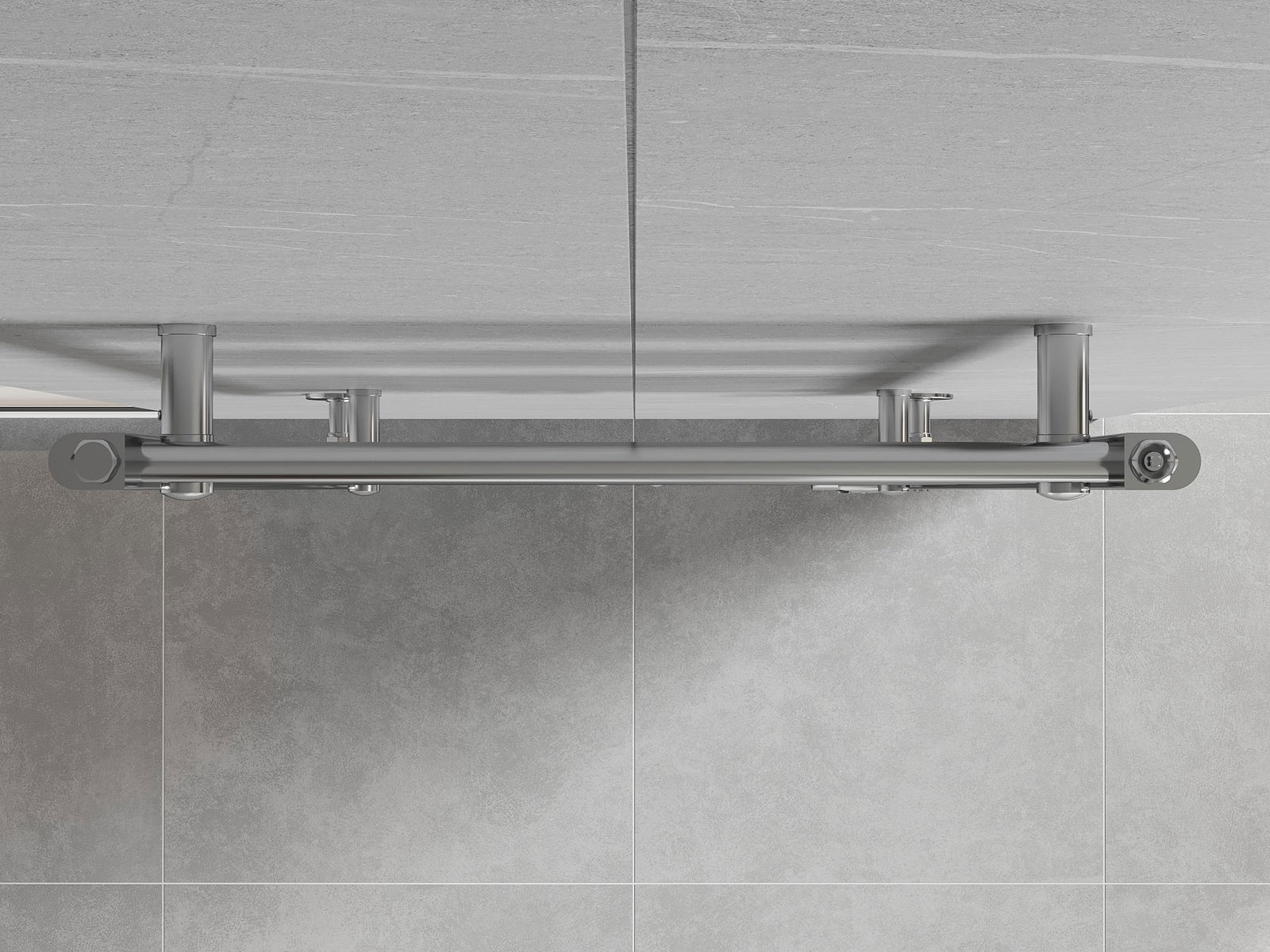 Produkt aus héichwäertege Materialien, déi resistent géint Dofegeet a Korrosioun sinn, doduerch behält et seng attraktiv Ausgesin an Funktionalitéit laangfristeg, onofhängeg vum Feuchtigkeitsniveau am Raum.