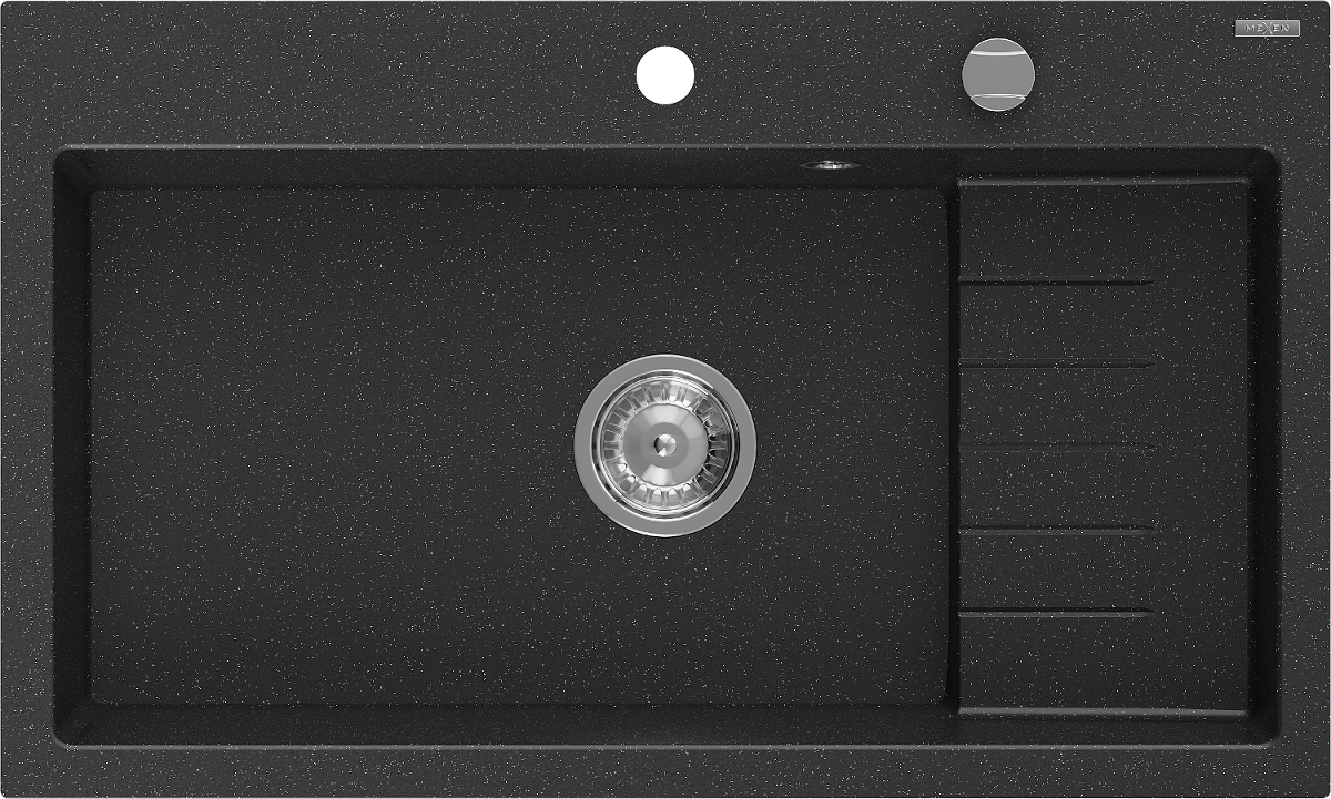 Mexen Omar Granitspullzong 1-Kummer 800 x 480 mm, schwaarz/sëlwer metallic, Siphon chrom - 6520801005-73