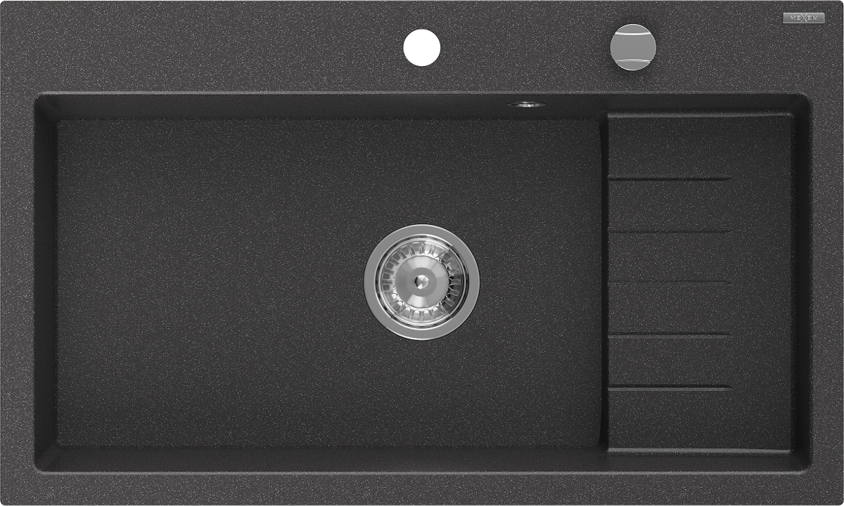 Mexen Omar 1-Kommeren Granitspullser mat 800 x 480 mm, schwaar gesprenkelt, chrom Syphon - 6520801005-76