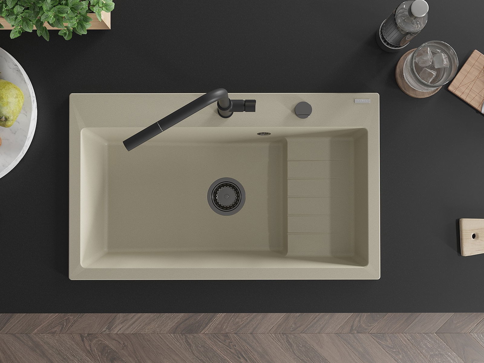 D'Uewerfläch vum Spullstee ass fleck- a verfärbungsresistent, wat se einfach ze botzen mécht an hir Faarf iwwer eng laang Zäit vum Gebrauch behalen léisst. Esthetesch an praktesch Ergänzung fir all Kichen.