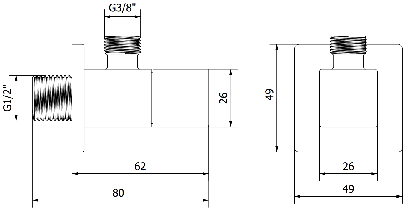 Uschloss-Duerchmiesser: G 1/2" a G 3/8"