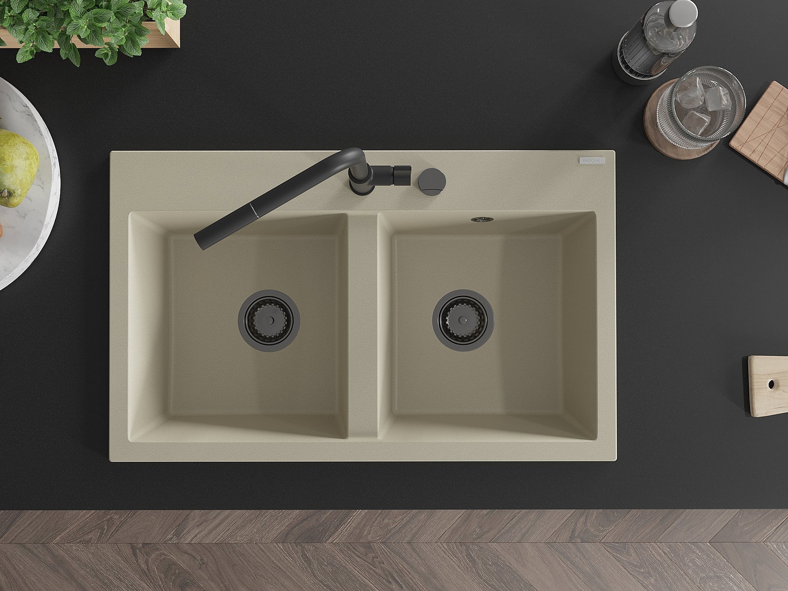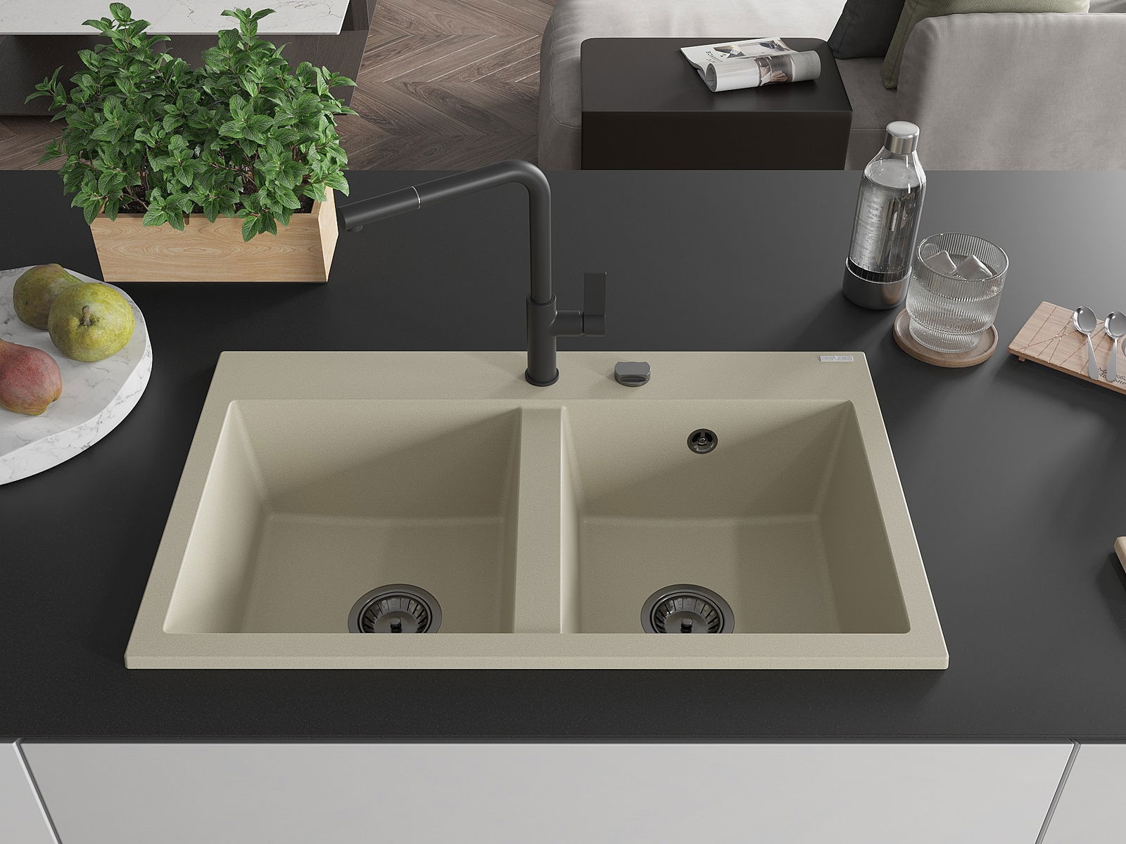 Den Ëmwäschbecken ass aus héichwäertege Granit gemaach. Et stellt eng elegant awer virun allem praktesch Ergänzung fir all Kichen duer, onofhängeg vun hirem Stil. Déi héich Qualitéit an Haltbarkeet vum Granit suergen fir méi järelaang Benotzung.