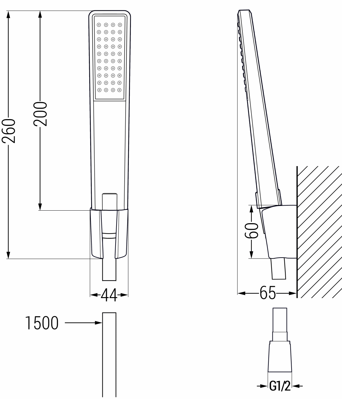 D'Duschschlauch ass aus ganz haltbarem an elastesche PVC-Material gemaach. Et ass resistent géint héich Temperaturen an héijen Waasserdrock, an seng mëll a glat Struktur kraazt net d'Uewerfläch vun der Buedbidden oder Dusch.