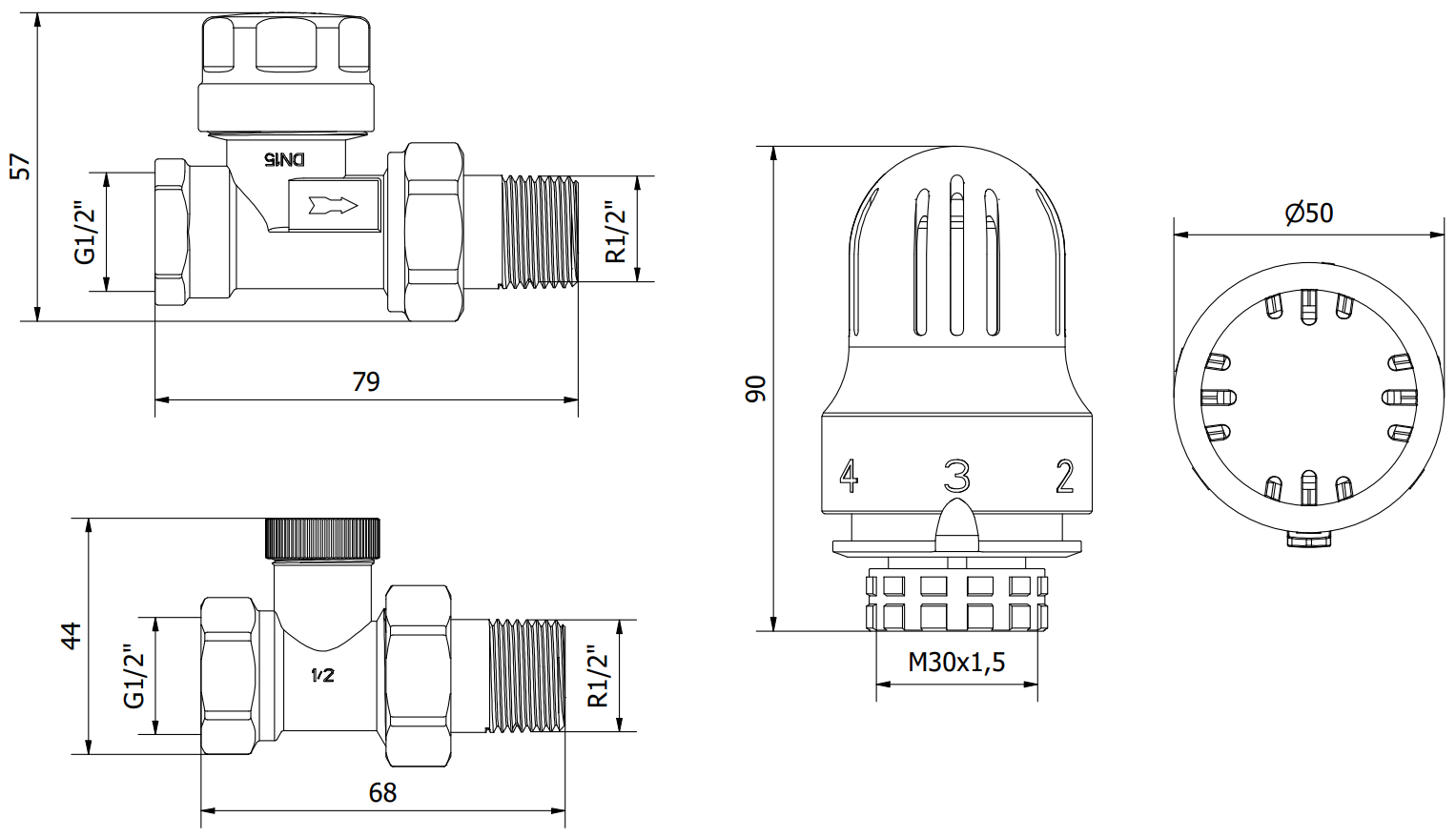 Anschlussdurchmiesser vun de Ventilen: G 1/2"