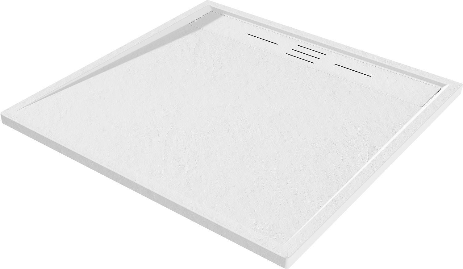 Den Douchebueden ass esou entwéckelt, datt d'Waasser fräi an d'Richtung vum Oflaaf kann oflafen. Et garantéiert en schnellen an effizienten Ofleedung vum Waasser vun der Uewerfläch vum Douchebued, fir d'Entstoe vu Pätz a Läcken an der Buedzëmmer ze vermeiden.