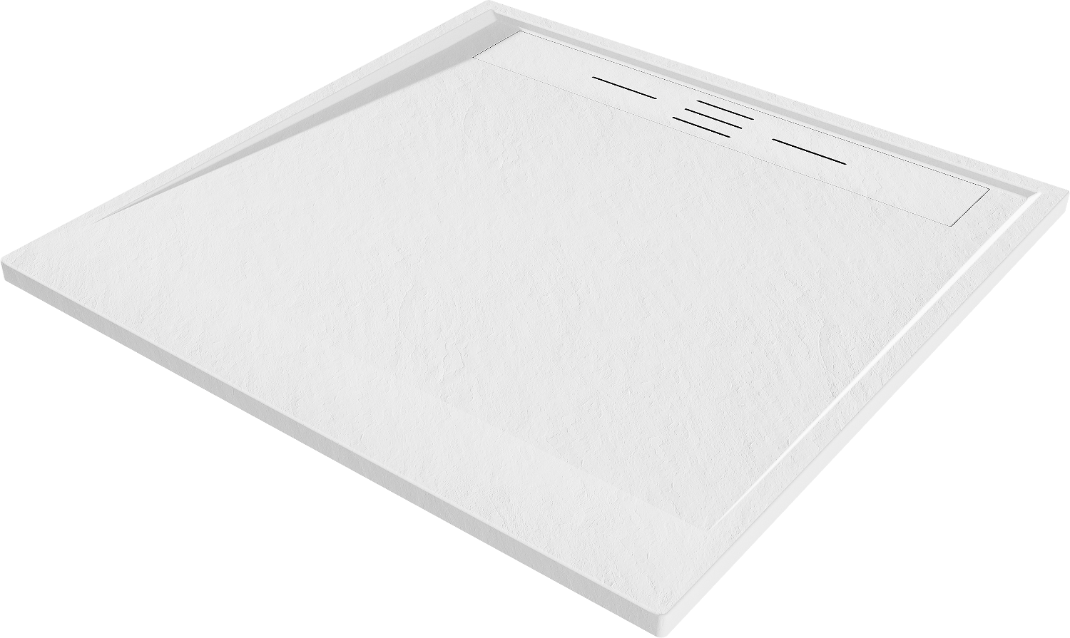 Den Douchebueden ass esou entwéckelt, datt d'Waasser fräi an d'Richtung vum Oflaaf kann oflafen. Et garantéiert en schnellen an effizienten Ofleedung vum Waasser vun der Uewerfläch vum Douchebued, fir d'Entstoe vu Pätz a Läcken an der Buedzëmmer ze vermeiden.
