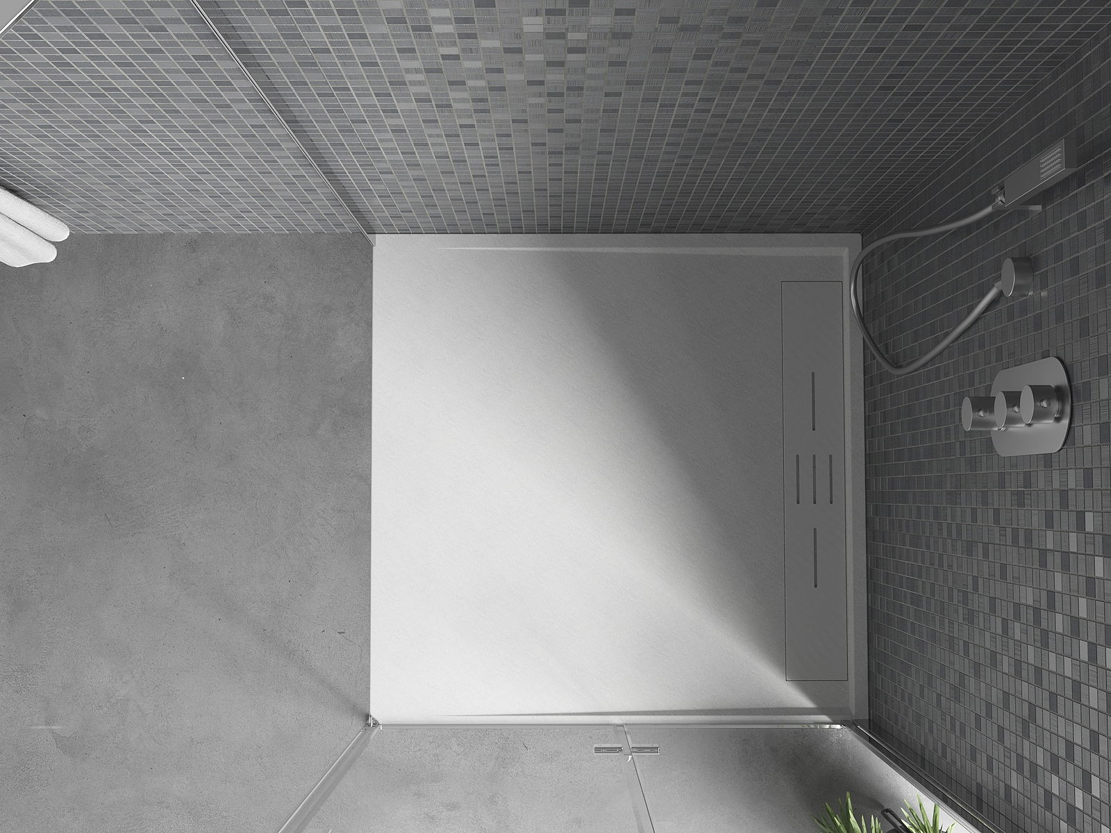 De Buedem vum Duschstot kann, wann néideg, geschnidde ginn, fir seng Dimensiounen an d'Form un e spezifescht Zëmmer unzepassen. Op dës Manéier schaaft Dir en eenzegaartegt Biederzëmmer-Raum, ideal ugepasst un déi individuel Besoinen an Arrangéierung vun der Buedzëmmer.
