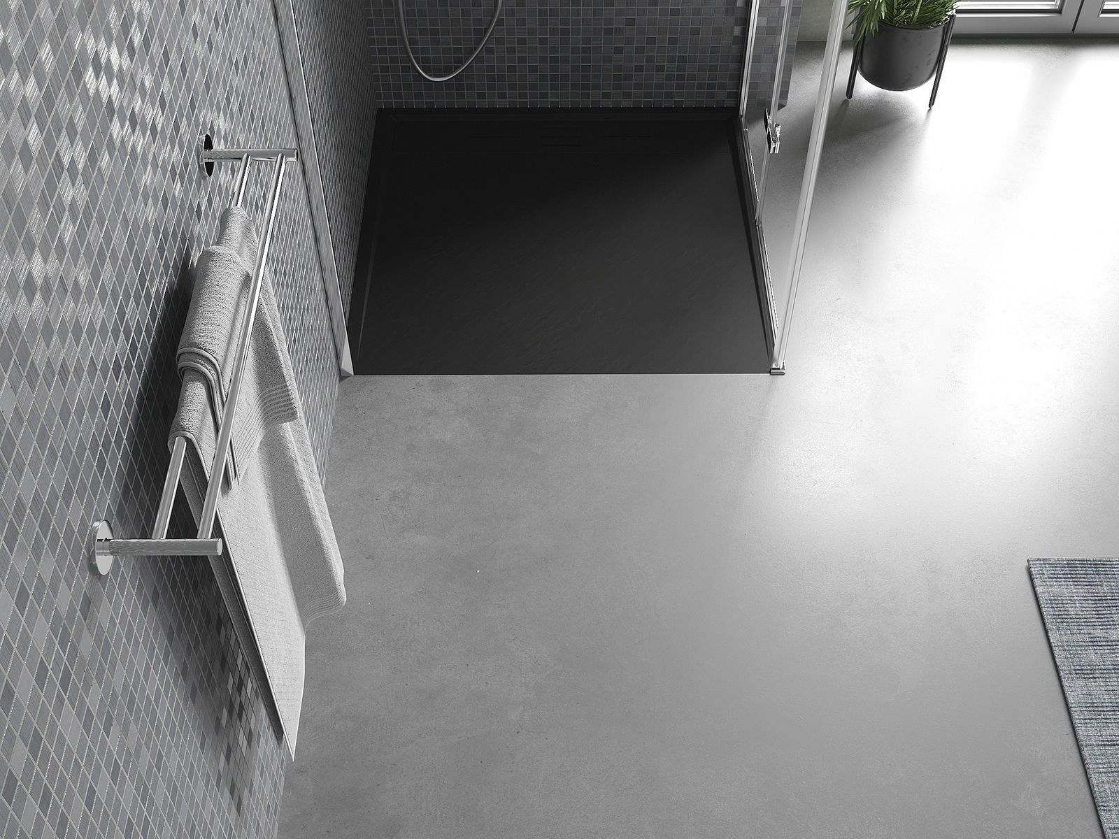 Déi geréng Héicht vum Douchebecken erlaabt eng traditionell Installatioun op de Buedem oder andeems se an de Buedem gesat gëtt, déi eng aussergewéinlech, eenheetlech Uewerfläch schaaft. D'Flexibilitéit vun der Installatioun erlaabt de Douchebecken un verschidden Interieurarrangementer unzepassen.