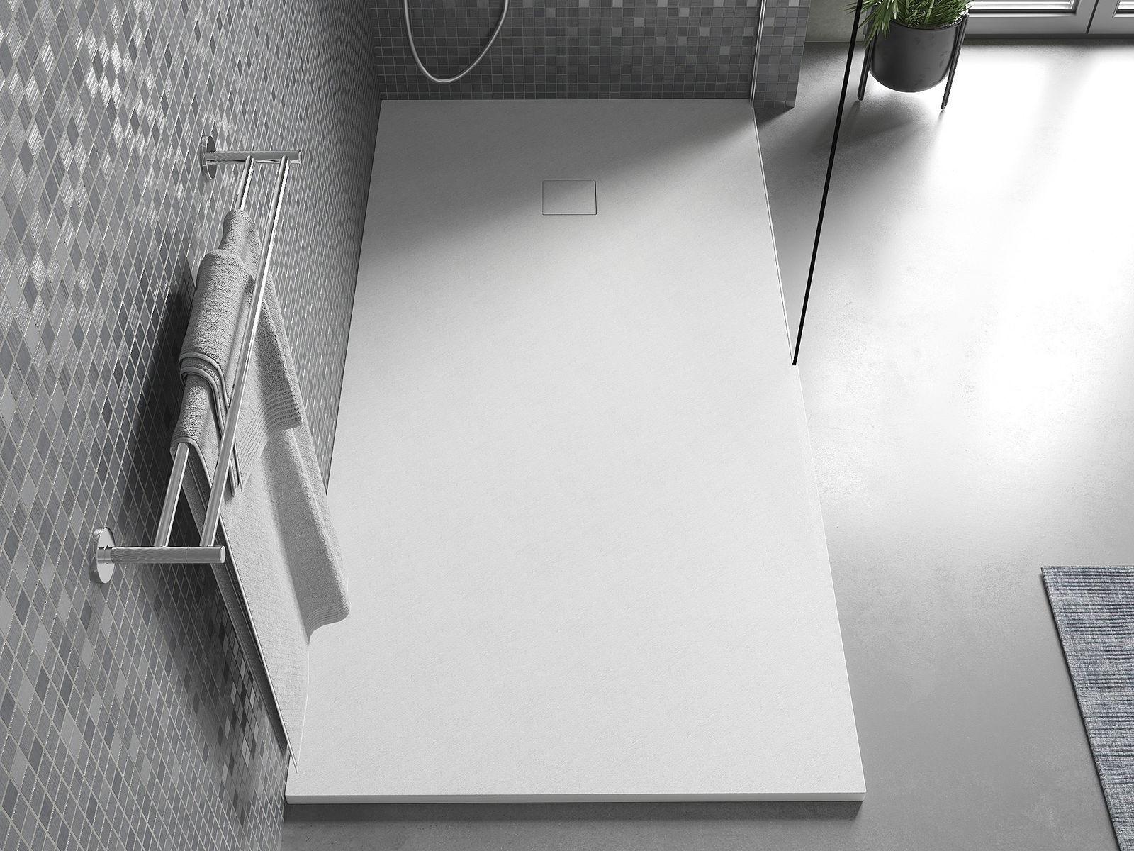 Déi geréng Héicht vum Douchebecken erlaabt eng traditionell Installatioun op de Buedem oder andeems se an de Buedem gesat gëtt, déi eng aussergewéinlech, eenheetlech Uewerfläch schaaft. D'Flexibilitéit vun der Installatioun erlaabt de Douchebecken un verschidden Interieurarrangementer unzepassen.