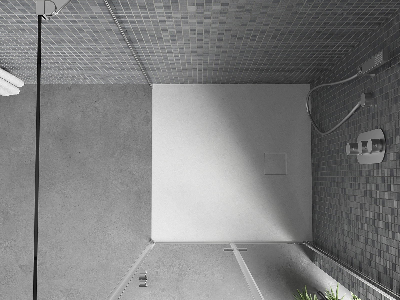 D'Uewerfläch vun der Duschkabinn erënnert un d'Struktur vun engem Steen. Et ass eng aussergewéinlech Kombinatioun vun natierlechem Ausgesi mat moderner Innenarchitektur. Et füügt Charakter derzou, ënnersträicht d'Ästhetik an d'Eleganz vum Buedzëmmerdesign a begeeschtert mat senger Form.