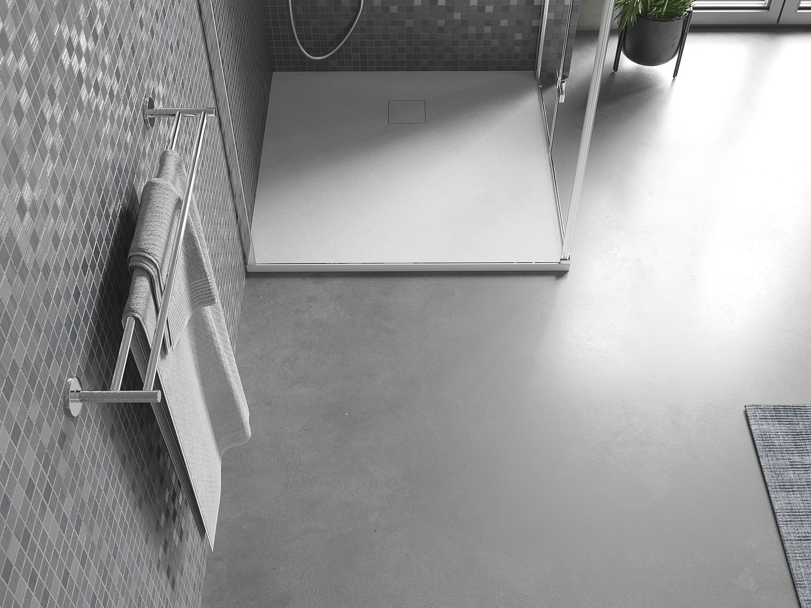 Déi geréng Héicht vum Douchebecken erlaabt eng traditionell Installatioun op de Buedem oder andeems se an de Buedem gesat gëtt, déi eng aussergewéinlech, eenheetlech Uewerfläch schaaft. D'Flexibilitéit vun der Installatioun erlaabt de Douchebecken un verschidden Interieurarrangementer unzepassen.