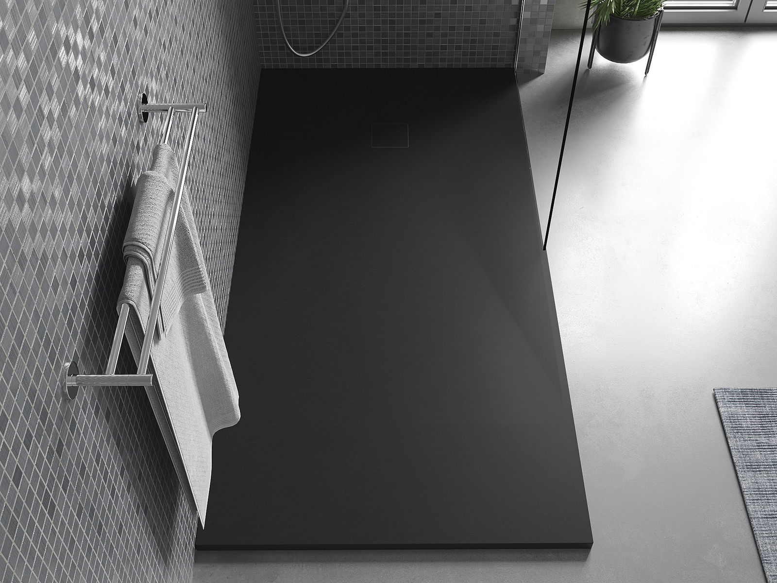Déi geréng Héicht vum Douchebecken erlaabt eng traditionell Installatioun op de Buedem oder andeems se an de Buedem gesat gëtt, déi eng aussergewéinlech, eenheetlech Uewerfläch schaaft. D'Flexibilitéit vun der Installatioun erlaabt de Douchebecken un verschidden Interieurarrangementer unzepassen.