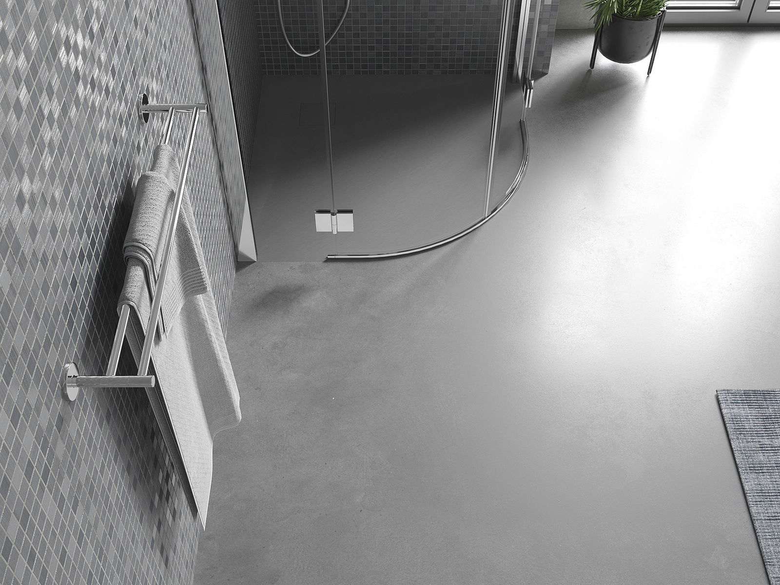 Déi geréng Héicht vum Douchebecken erlaabt eng traditionell Installatioun op de Buedem oder andeems se an de Buedem gesat gëtt, déi eng aussergewéinlech, eenheetlech Uewerfläch schaaft. D'Flexibilitéit vun der Installatioun erlaabt de Douchebecken un verschidden Interieurarrangementer unzepassen.