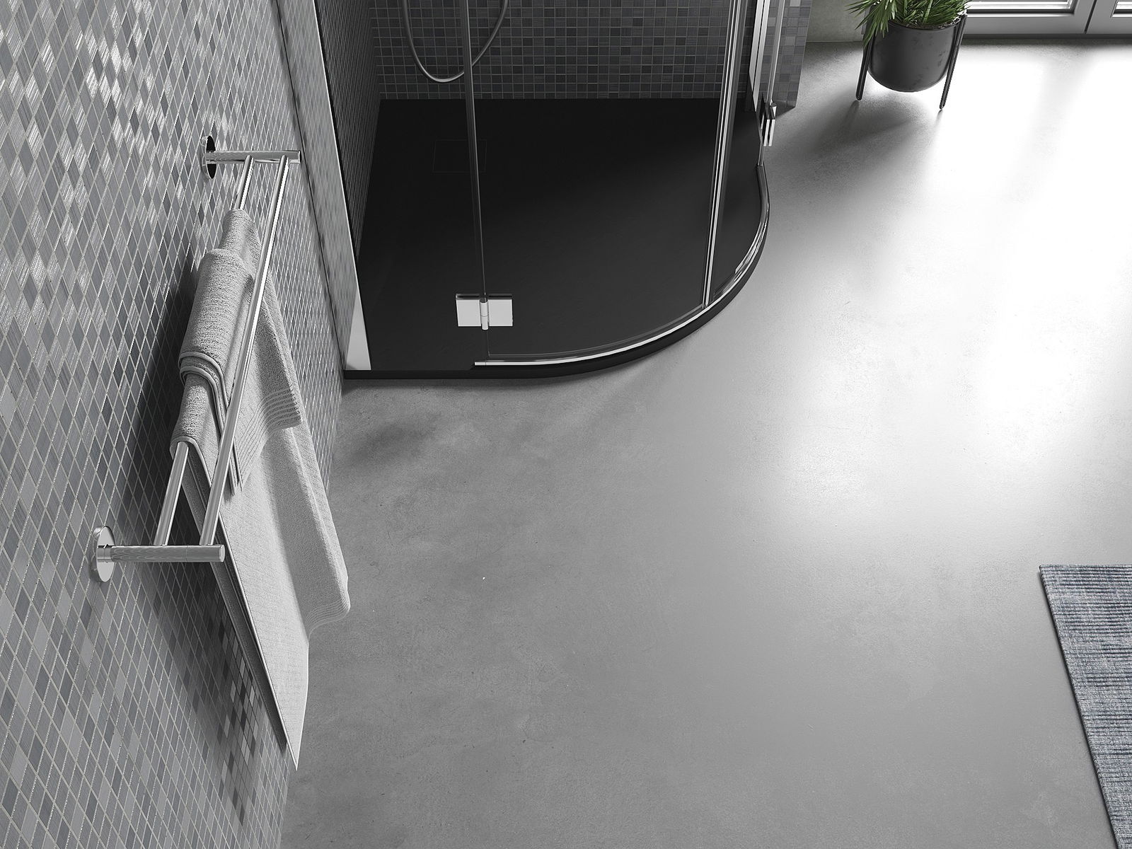 Déi geréng Héicht vum Douchebecken erlaabt eng traditionell Installatioun op de Buedem oder andeems se an de Buedem gesat gëtt, déi eng aussergewéinlech, eenheetlech Uewerfläch schaaft. D'Flexibilitéit vun der Installatioun erlaabt de Douchebecken un verschidden Interieurarrangementer unzepassen.