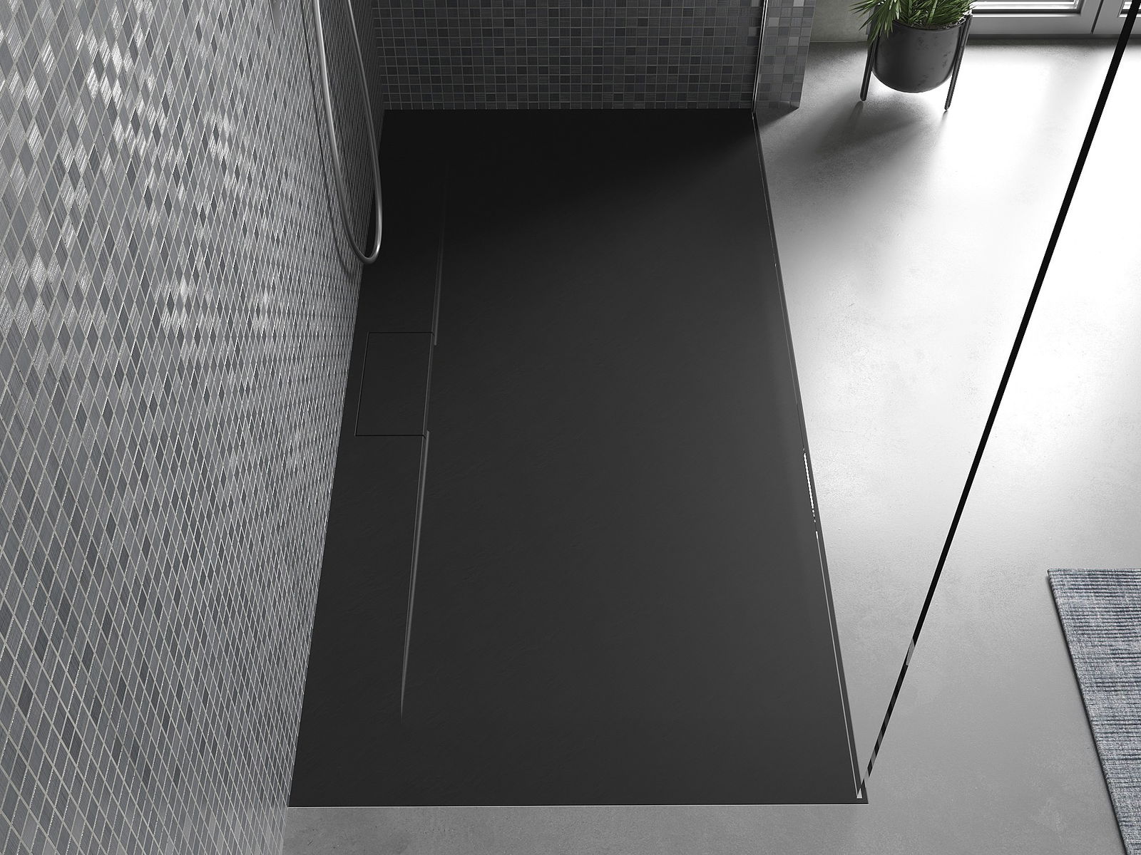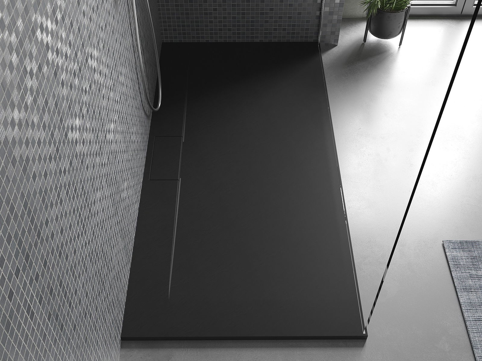 Déi geréng Héicht vum Douchebecken erlaabt eng traditionell Installatioun op de Buedem oder andeems se an de Buedem gesat gëtt, déi eng aussergewéinlech, eenheetlech Uewerfläch schaaft. D'Flexibilitéit vun der Installatioun erlaabt de Douchebecken un verschidden Interieurarrangementer unzepassen.