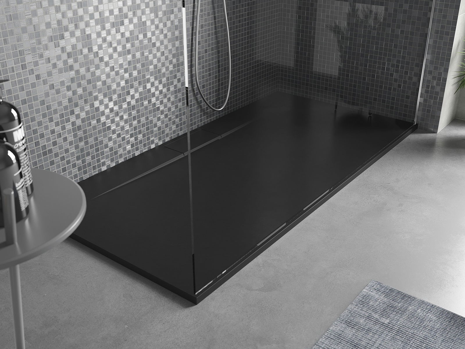Déi geréng Héicht vum Douchebecken erlaabt eng traditionell Installatioun op de Buedem oder andeems se an de Buedem gesat gëtt, déi eng aussergewéinlech, eenheetlech Uewerfläch schaaft. D'Flexibilitéit vun der Installatioun erlaabt de Douchebecken un verschidden Interieurarrangementer unzepassen.