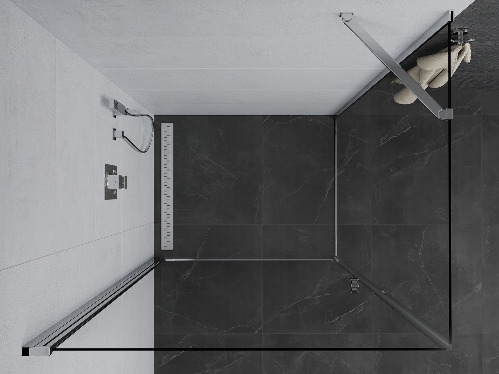 Dank dem universelle Montagesystem kënnen d'Duschdieren op der lénker oder op der rietser Säit montéiert ginn, ofhängeg vun de Besoinen. Duerch dëst kënns du de Buedzëmmer-Dusch mat Liichtegkeet un de Raum upassen.