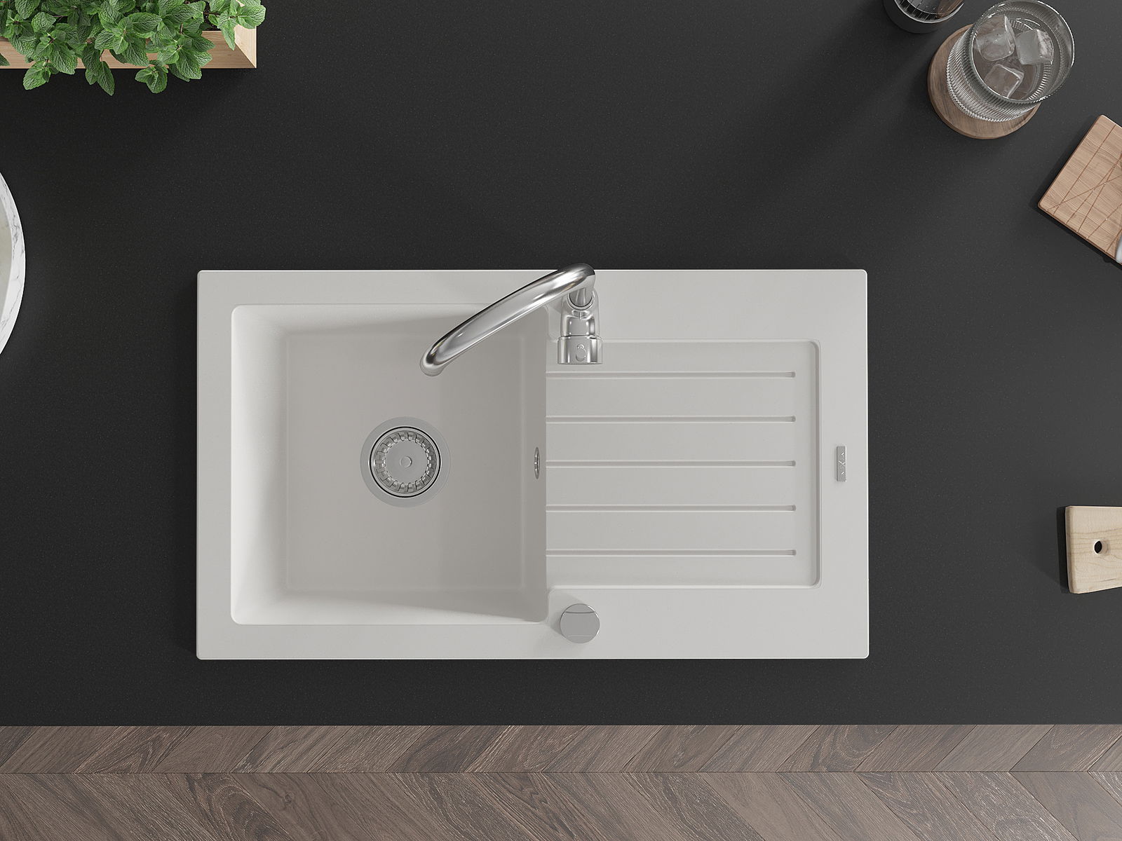 D'Uewerfläch vum Spullstee ass fleck- a verfärbungsresistent, wat se einfach ze botzen mécht an hir Faarf iwwer eng laang Zäit vum Gebrauch behalen léisst. Esthetesch an praktesch Ergänzung fir all Kichen.