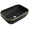Mexen Rita ass eng elegant Uewalnbekbleddisp mat den Dimensiounen 45,5 x 32,5 cm, aus matte Sanitärkeramik a schwaarztem Steenfaarw gemaach. Wéinst sengem Owal a Mangel u Lach fir Kraan passt et perfekt an modern Interieurarrangementer, wat hinnen Stil a Klass ëm uwet gëtt. D'Déift vun 11,5 cm suergt fir bequem Benotzung, an d'Uewerfläch mat Schutzbeschichtung ass einfach ze botzen. Et ass eng exzellent Wiel fir Persoune déi Ästhetik a Funktionalitéit am Buedzëmmer schätzen.
