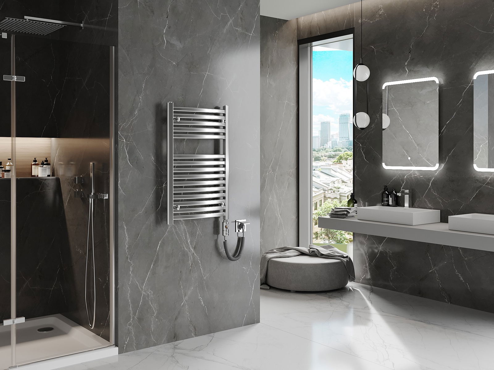 Produkt aus héichwäertege Materialien, déi resistent géint Dofegeet a Korrosioun sinn, doduerch behält et seng attraktiv Ausgesin an Funktionalitéit laangfristeg, onofhängeg vum Feuchtigkeitsniveau am Raum.