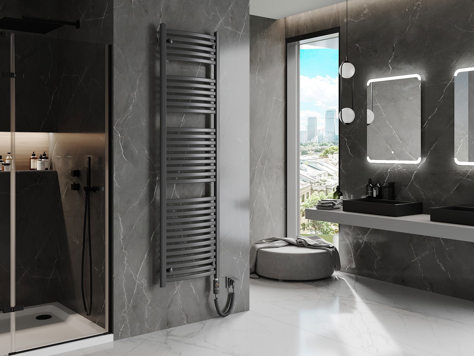 Produkt aus héichwäertege Materialien, déi resistent géint Dofegeet a Korrosioun sinn, doduerch behält et seng attraktiv Ausgesin an Funktionalitéit laangfristeg, onofhängeg vum Feuchtigkeitsniveau am Raum.