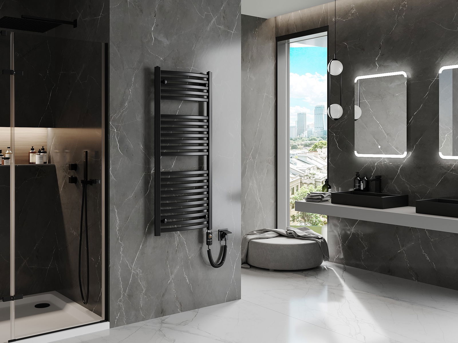 Produkt aus héichwäertege Materialien, déi resistent géint Dofegeet a Korrosioun sinn, doduerch behält et seng attraktiv Ausgesin an Funktionalitéit laangfristeg, onofhängeg vum Feuchtigkeitsniveau am Raum.