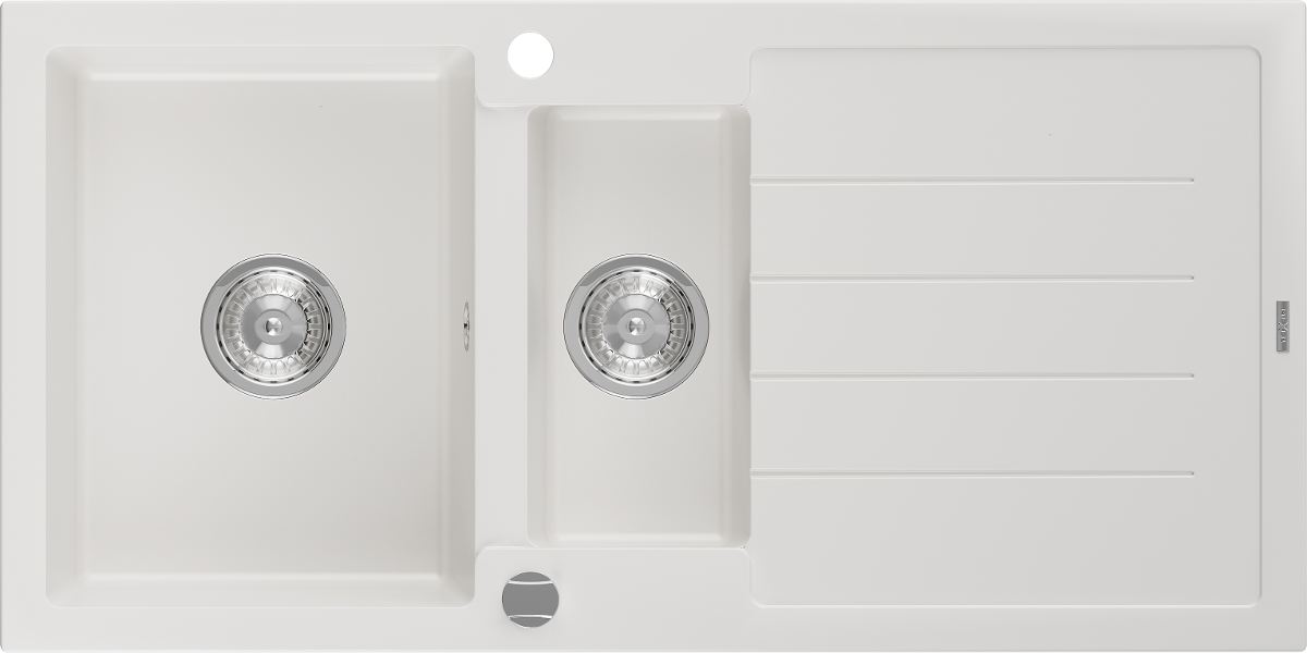 Den Spullsteen huet 2 virberäitet Lächer mat engem Duerchmiesser vun 35 mm, déi selbststänneg ausgeschloen kënne ginn. Se kënne fir d'Montage vun engem Flëssegkeetsspender benotzt ginn, deen d'Präsenz vu Plastikfläschen an der Kichen eliminéiert an hir en elegant Finish gëtt.