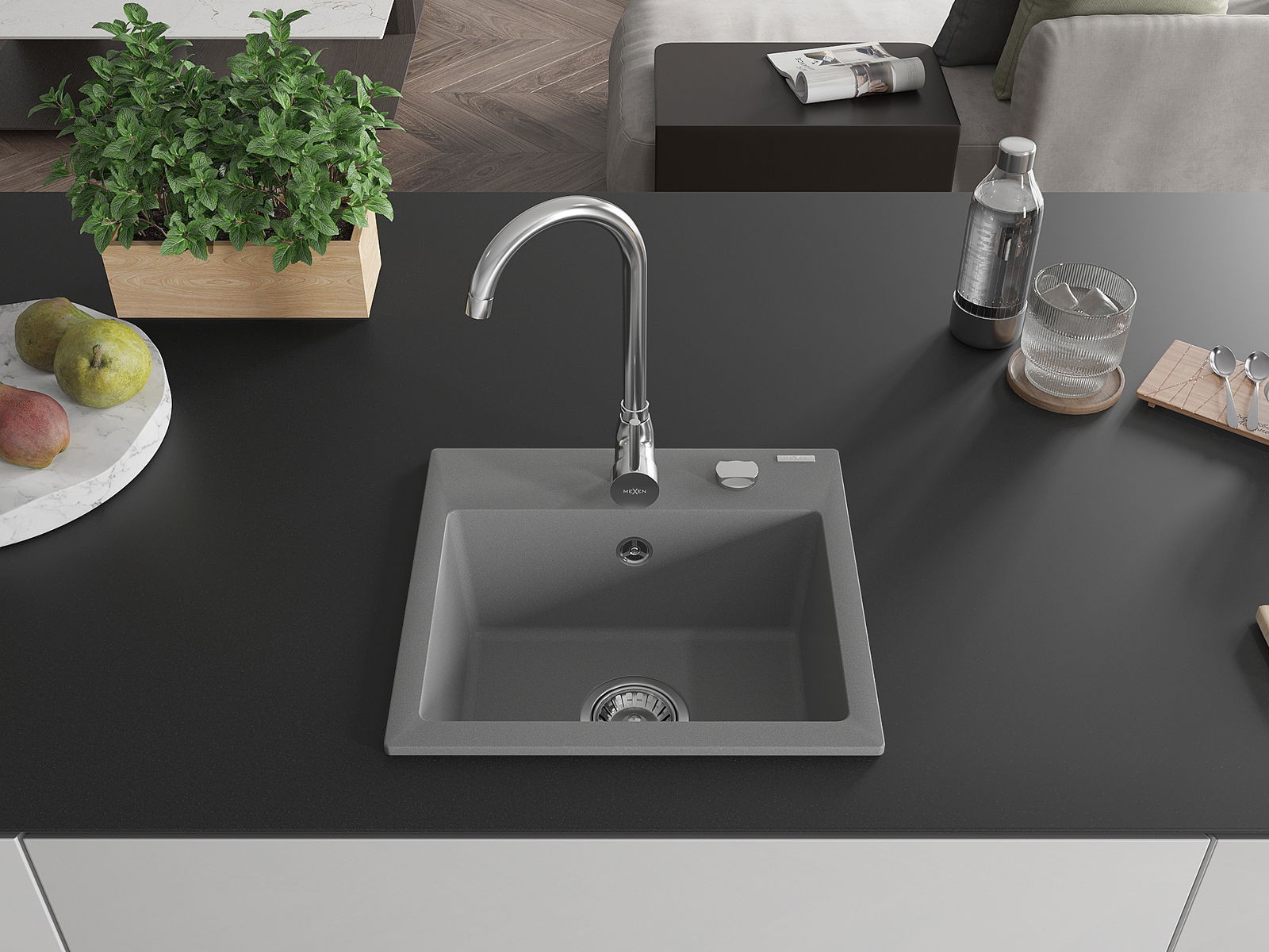 Den Ëmwäschbecken ass aus héichwäertege Granit gemaach. Et stellt eng elegant awer virun allem praktesch Ergänzung fir all Kichen duer, onofhängeg vun hirem Stil. Déi héich Qualitéit an Haltbarkeet vum Granit suergen fir méi järelaang Benotzung.