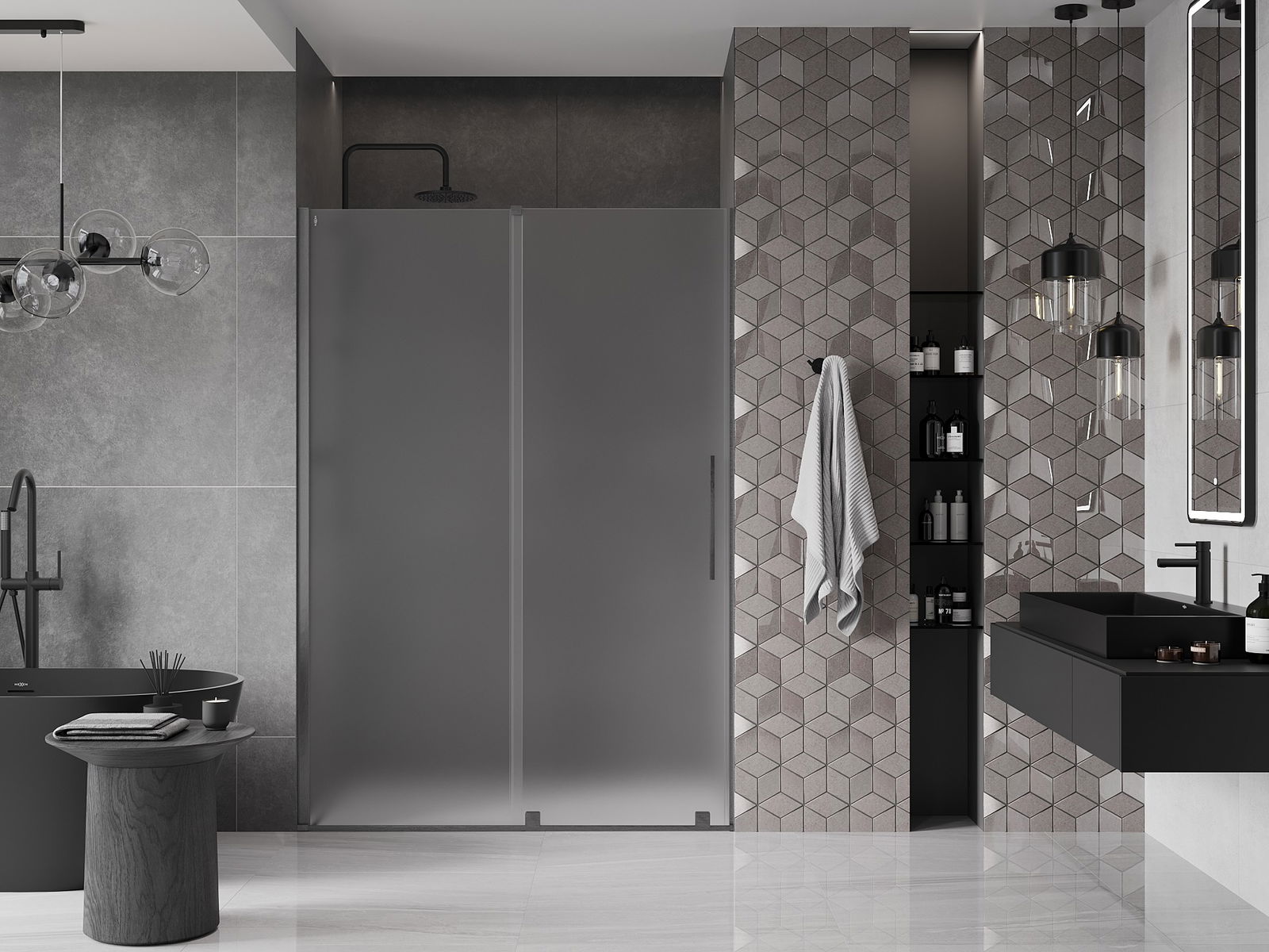 En handlecht a komfortabele Grëff ass aus Edelstol gemaach. E modernen Design an enger Ofschloss der Faarf vun de Profiler ugepasst, gëtt et en moderne a stilvolle Look, deen d'Aesthetik vun all Buedzëmmer ervirhieft.