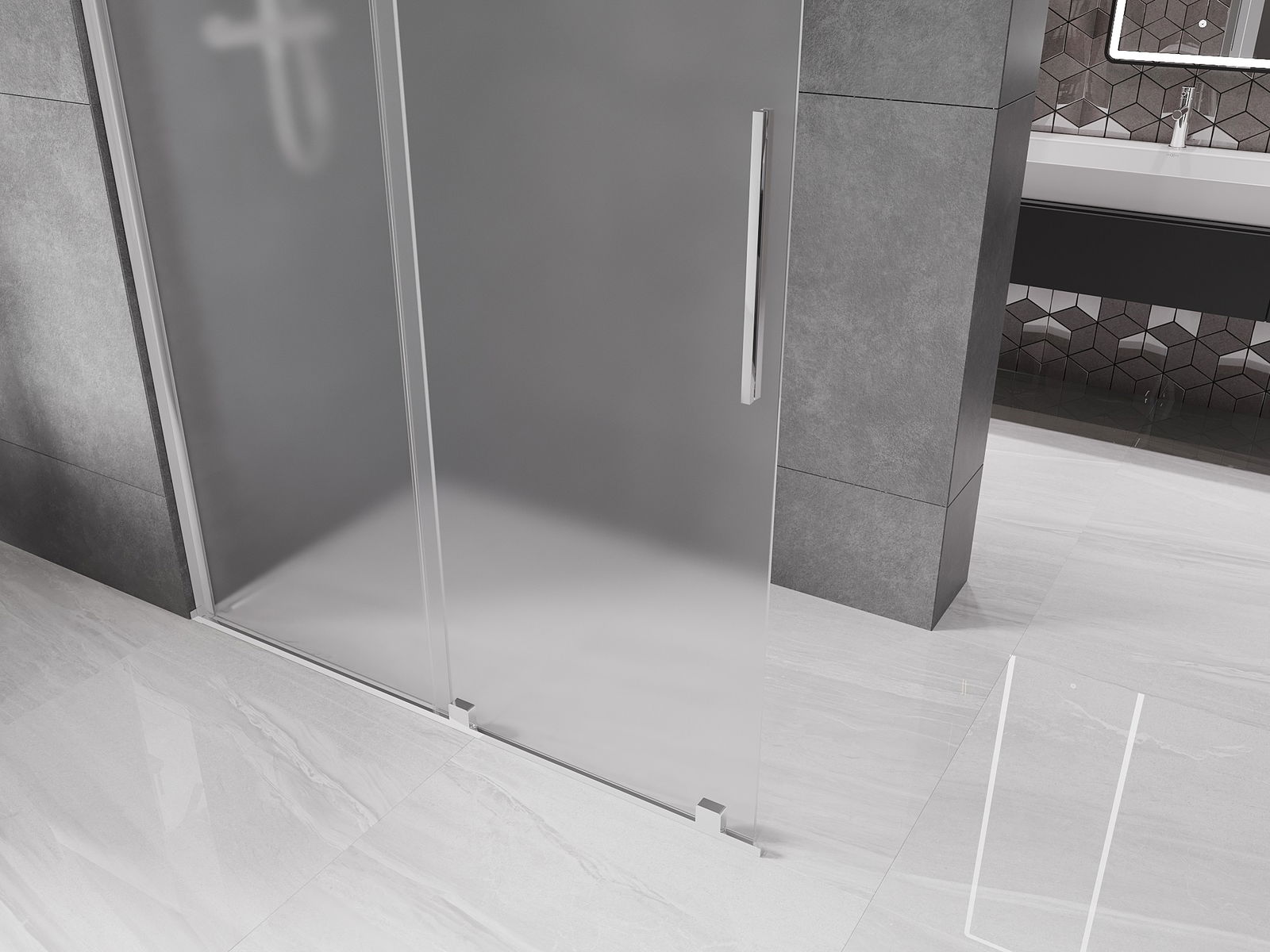 Mexen Velar Schiebbar Duschwand Walk-in 150 x 200 cm, gefrostet 8 mm, Chrom - 871-150-000-33-01
