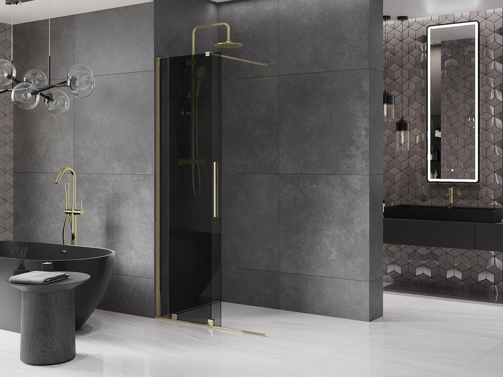 Mexen Velar Schiebeduschwand Walk-in 70 x 200 cm, Grafit 8 mm, Gold - 871-070-000-43-50