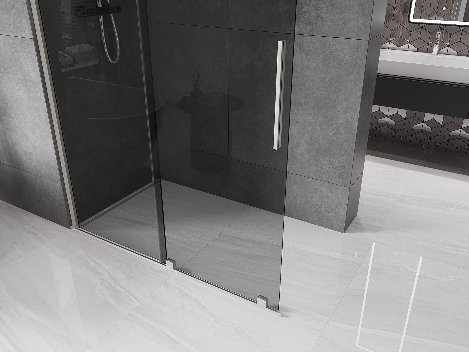 En handlecht a komfortabele Grëff ass aus Edelstol gemaach. E modernen Design an enger Ofschloss der Faarf vun de Profiler ugepasst, gëtt et en moderne a stilvolle Look, deen d'Aesthetik vun all Buedzëmmer ervirhieft.