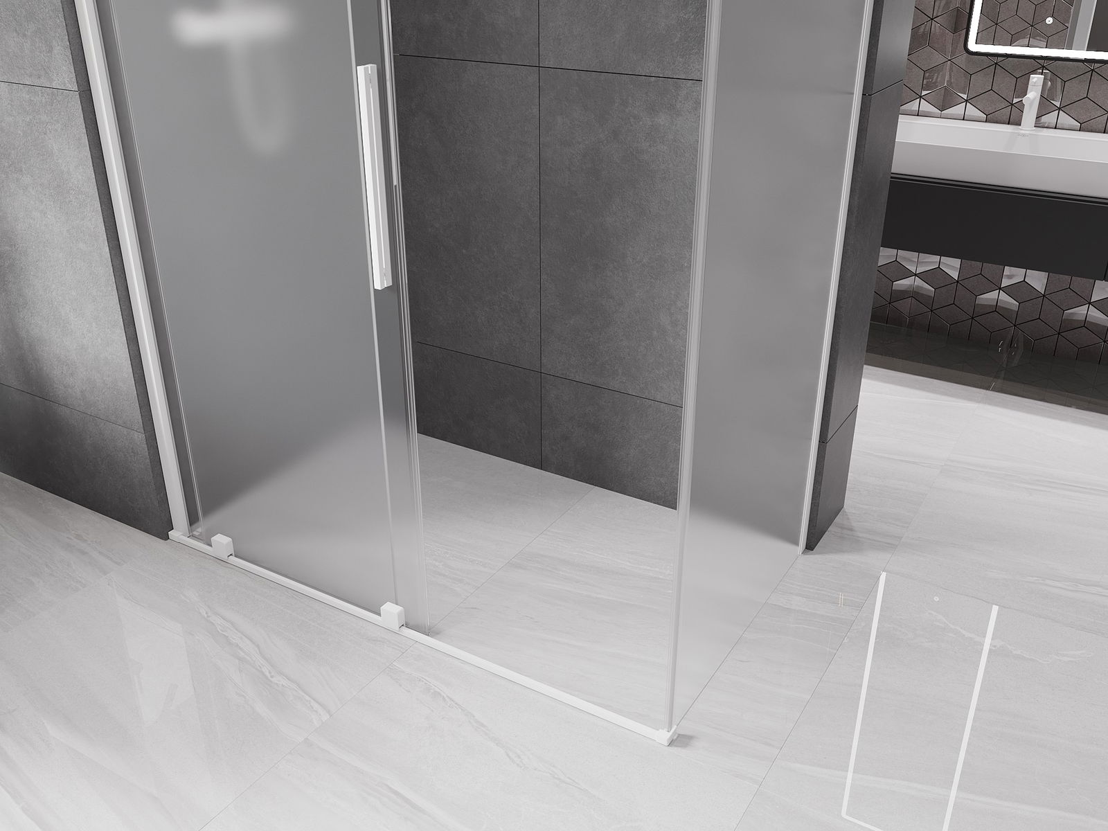Mexen Velar schiebar Duschkabine 140 x 70 cm, gefrostet, wäiss - 871-140-070-31-20