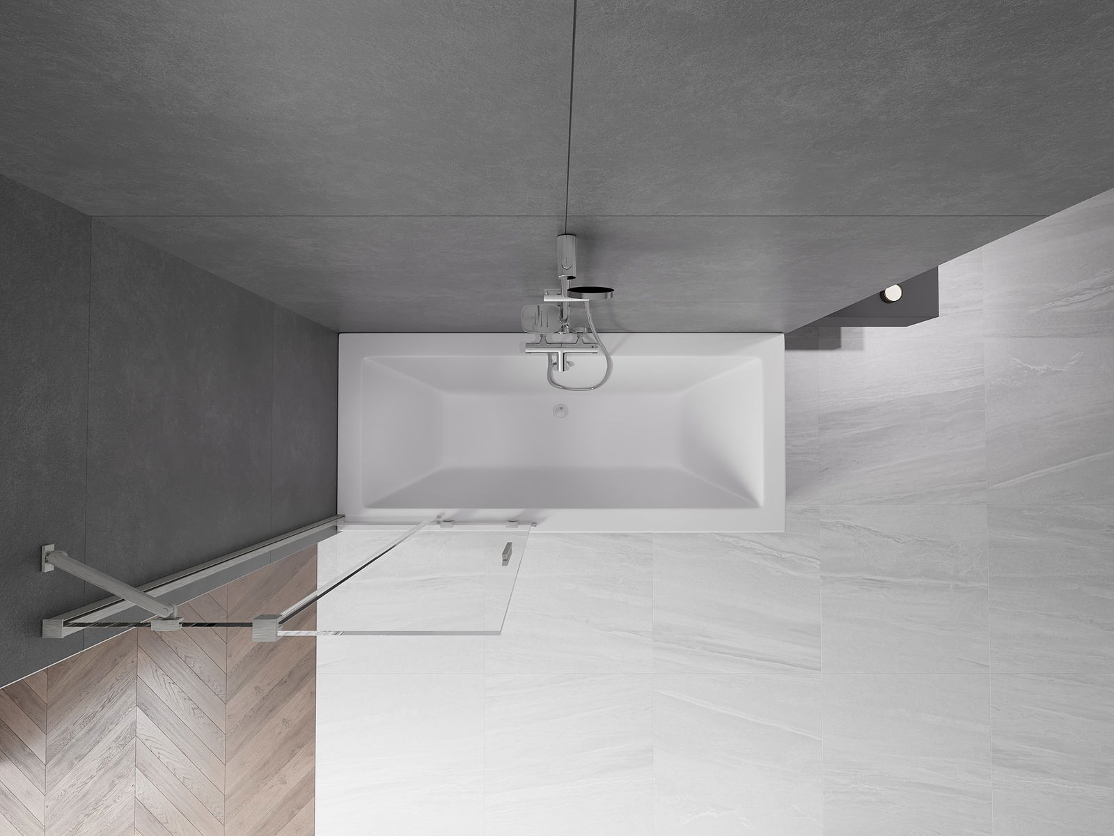 Dank dem universellen Montagesystem kann de Paravent je no Bedierfness op der rietser oder lénkser Säit montéiert ginn. Sou kanns de eng Dusch plangen, déi op de Raum vun der Buedzëmmer ugepasst ass.