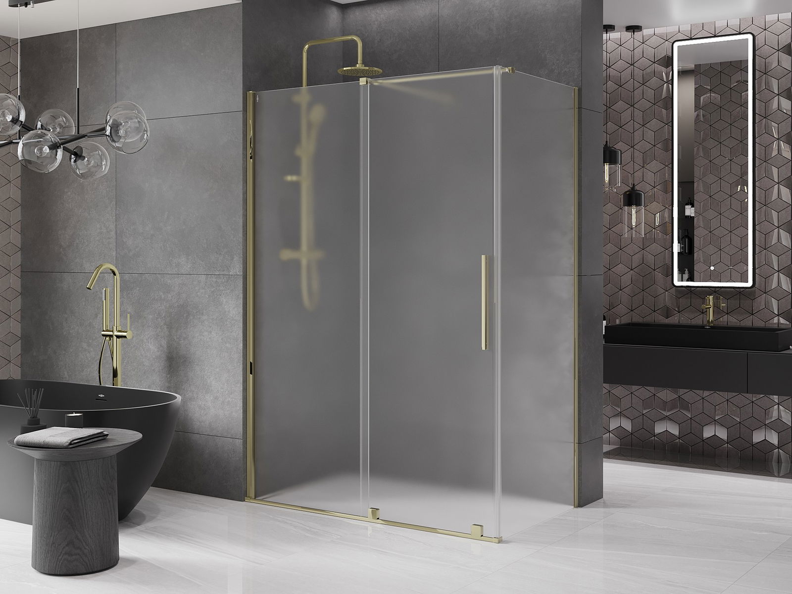 Mexen Velar Schiebeduschkabine 130 x 70 cm, Raureif, Gold - 871-130-070-31-50