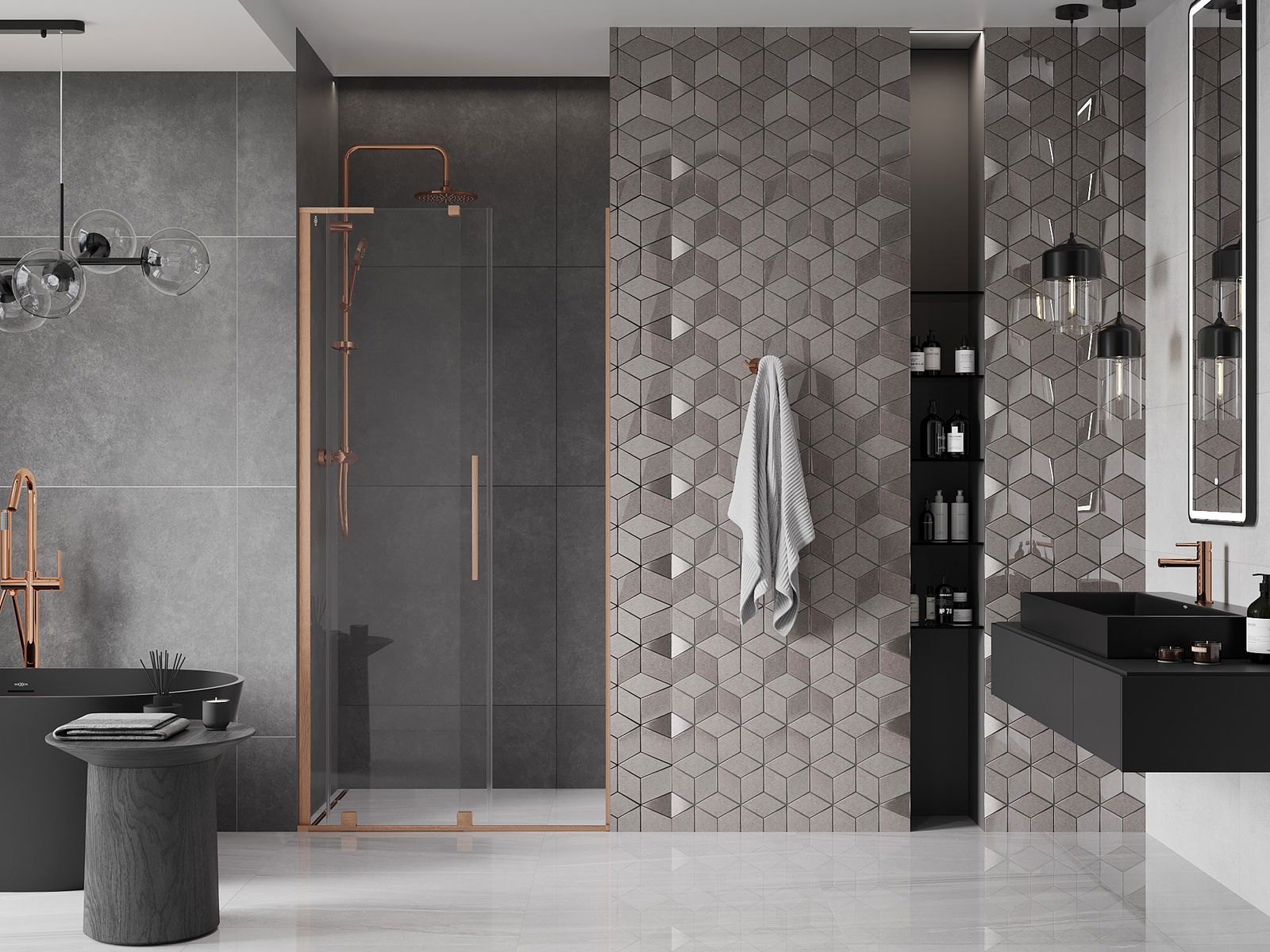 Mexen Velar L schiebbar Duschdier 90 cm, transparent, gebierste Kupfer - 871-090-003-01-65